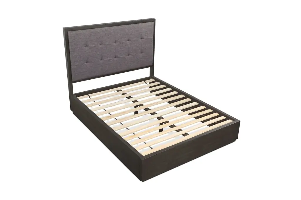 Glamour! Fashion! Hollywood! The Hollyridge Collection is the very definition of glamorous. The Hollyridge Platform Bed has all the high style of the Hollyridge Collection with a more understated and versatile appeal. The tufted and upholstered headboard provides the Hollyridge Platform Bed with a refined elegance. The solid wood frame is constructed with solid acacia wood and acacia veneers in a basalt grey finish. This is a true platform bed that does not require a box spring or other foundation for your mattress. Feel as fashionable as a Hollywood starlet in your Hollyridge Platform Bed!