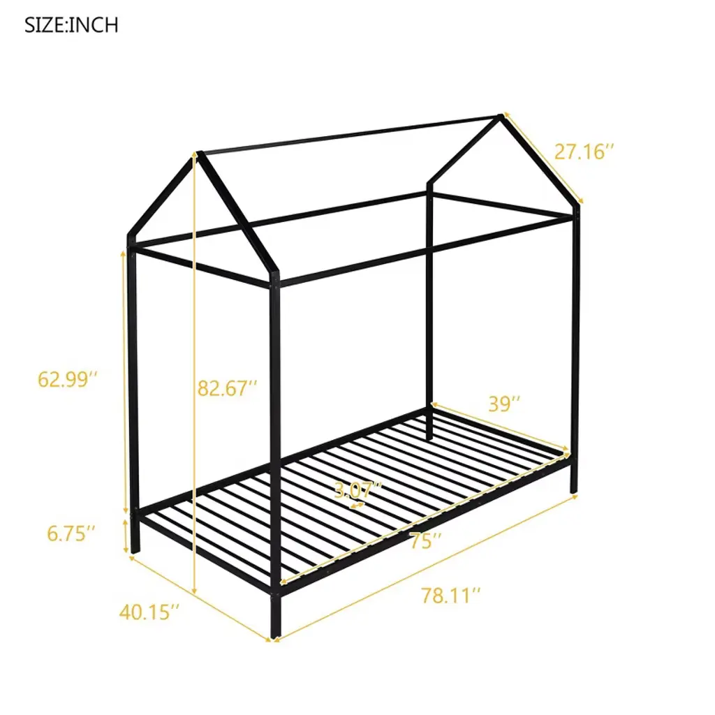 House Bed Frame Twin Size Kids Bed Frame Metal Platform Bed Floor Bed For Kids Boys Girls No Box Spring Needed Black