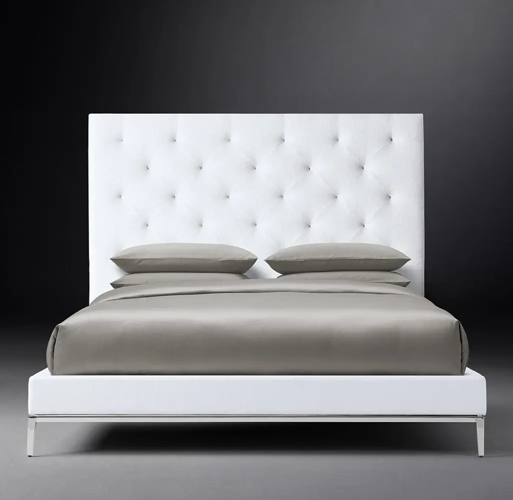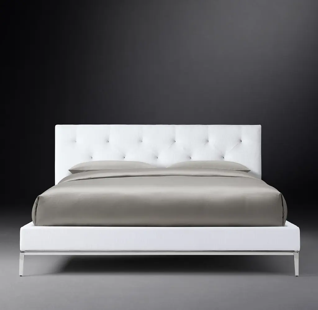Italia Fabric Diamond-Tufted Panel Platform Bed - Metal Base