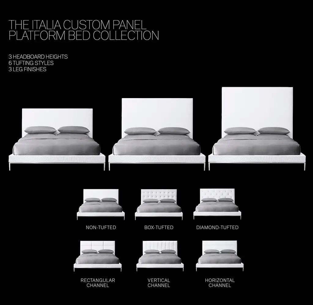 Italian modernist design of the 1950s and '60s informs the simplified lines of our bedroom collection. Create your perfect bed, down to the last detail – from headboard height and style to upholstery fabrics or leathers. Impeccably tailored, our diamond-tufted panel bed combines the refinement of hand tufting with the luxurious comfort of an upholstered headboard. ALSO AVAILABLE IN LEATHER SHOP THE ENTIRE COLLECTION SHOP THE FRESHBED™ SLEEP SYSTEM SHOP AIRELOOM® MATTRESSES
