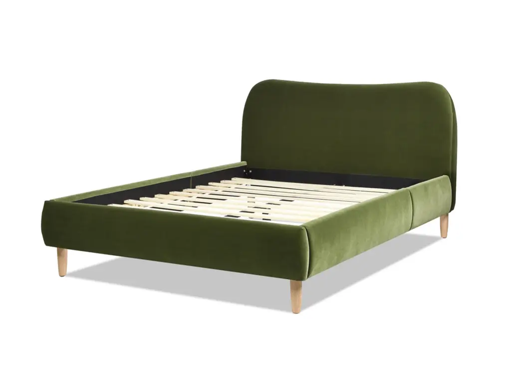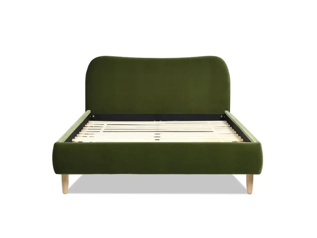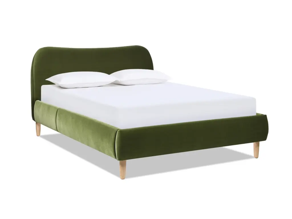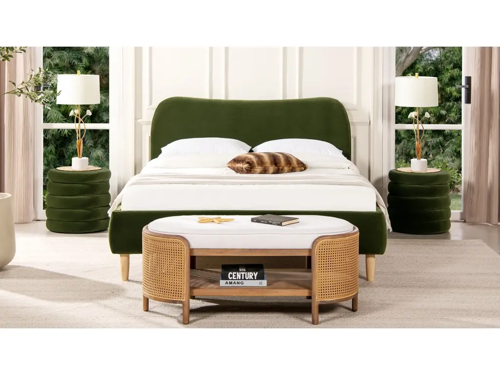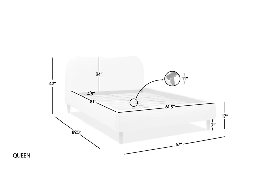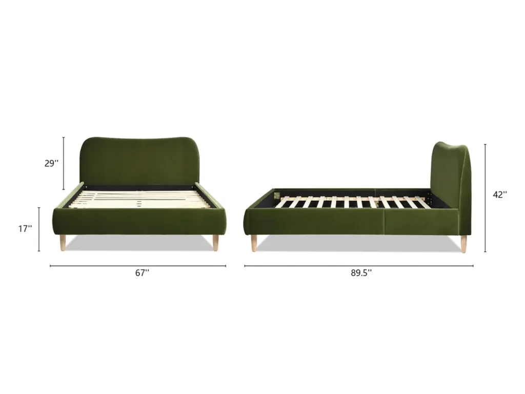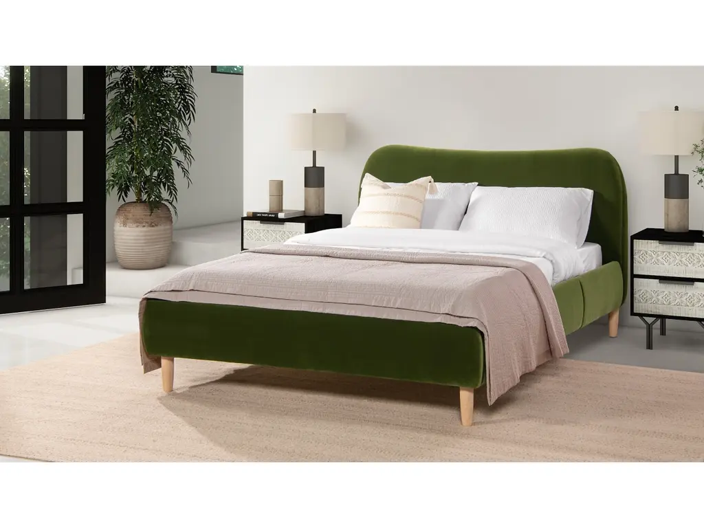 Transform your bedroom into a haven of relaxation with the Roman Platform Bed Collection by Jennifer Taylor Home. Fully upholstered in high-performance, beautifully textured fabric, this platform bed frame is a harmonious blend of comfort, style, and Scandinavian design. The camelback curved headboard design is simple with a modern edge. This exquisite bed is available in both queen and king sizes to suit your preferences. Natural wood legs in a soothing blonde finish provide sturdy support and a touch of nature's charm. Embracing the essence of Scandinavian style, this platform bed effortlessly merges minimalist aesthetics with cozy allure, making it a perfect centerpiece for modern and cozy bedrooms alike.