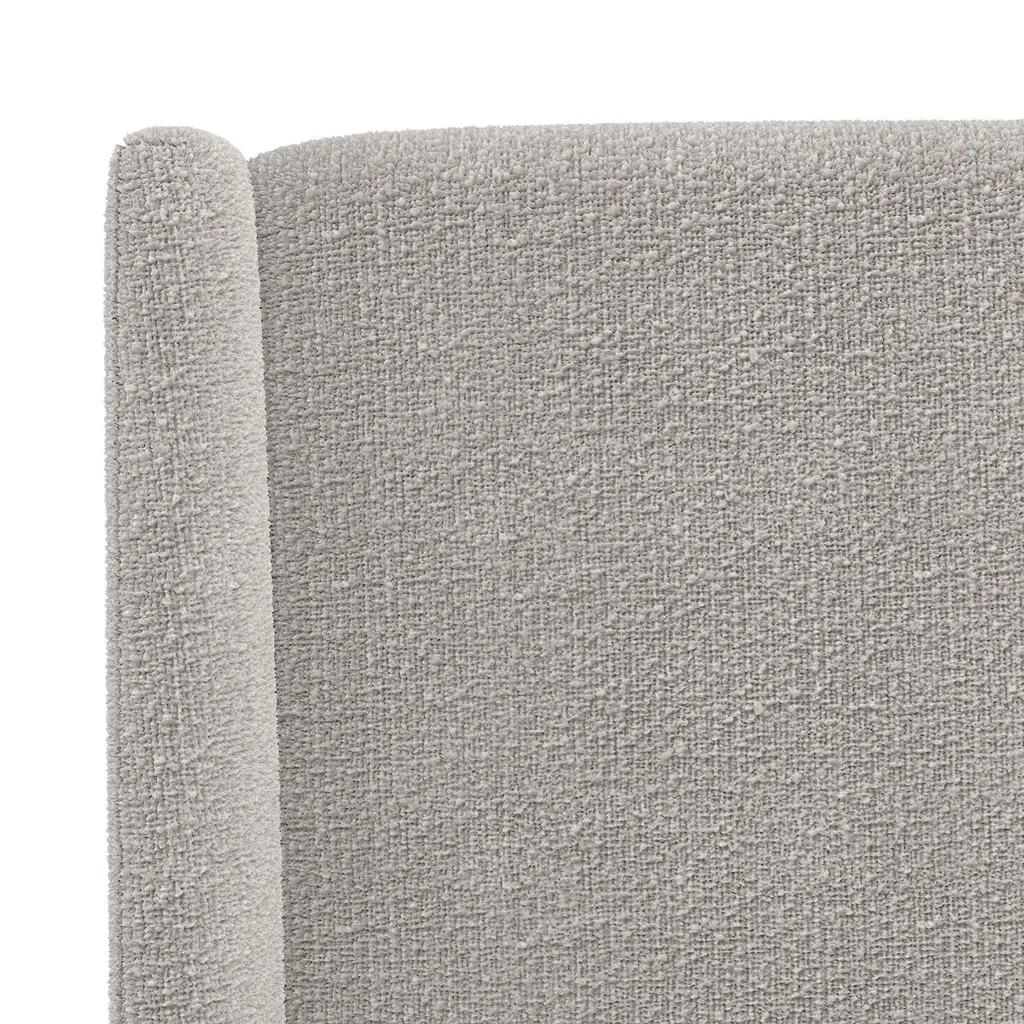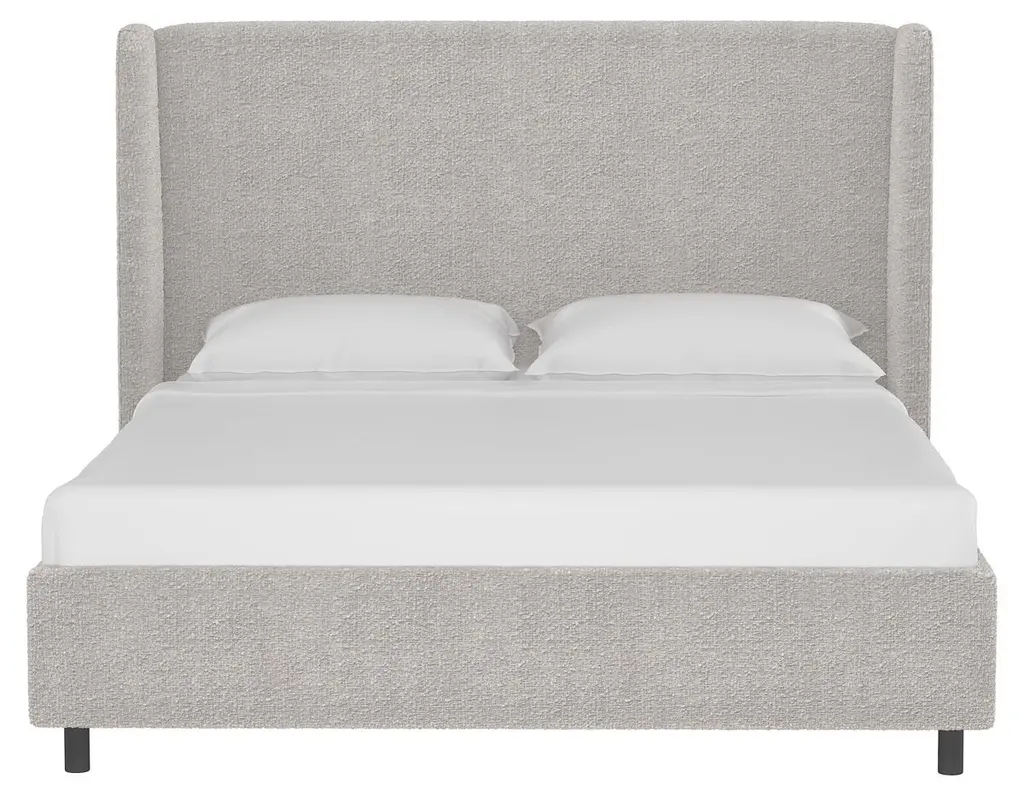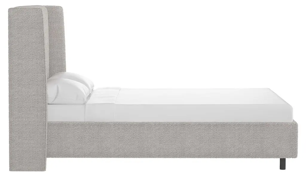 Made in the USA and upholstered in plush bouclé-like fabric, this contemporary update of the classic wingback bed will complement just about any bedroom. Generous headboard padding ensures long-lasting comfort and support while sitting up to read or watch TV. Because the bed comes with a slat system, no box spring is required.