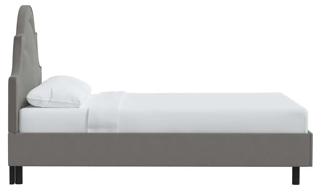 Made in the USA, this bed boasts a dramatic silhouette that will transform any bedroom into the haven of your dreams. Generous headboard padding ensures long-lasting comfort and support while sitting up to read or watch TV. Because the bed comes with a slat system, no box spring is required.