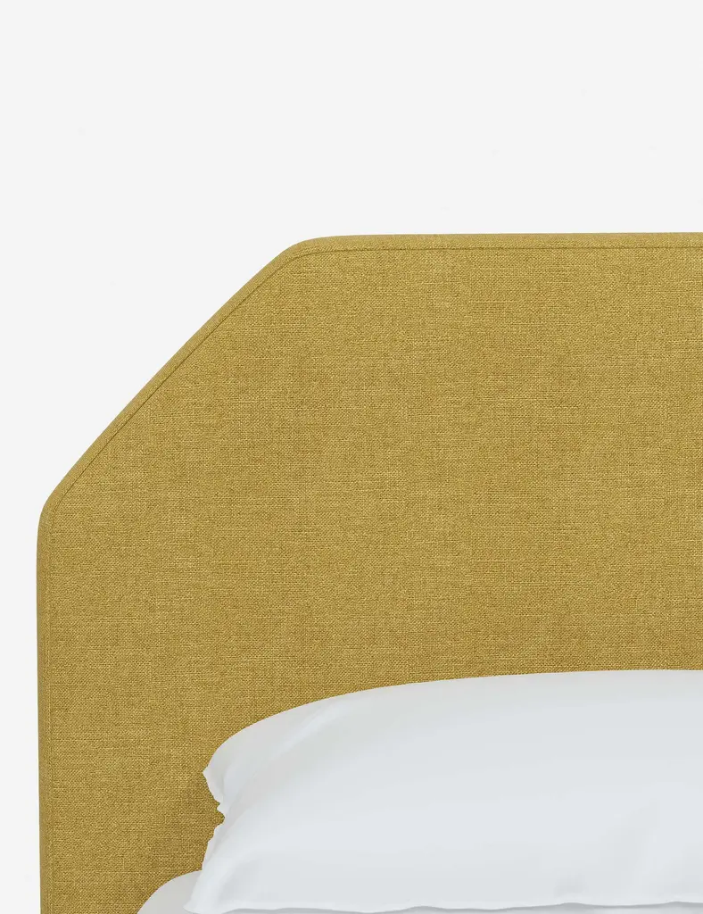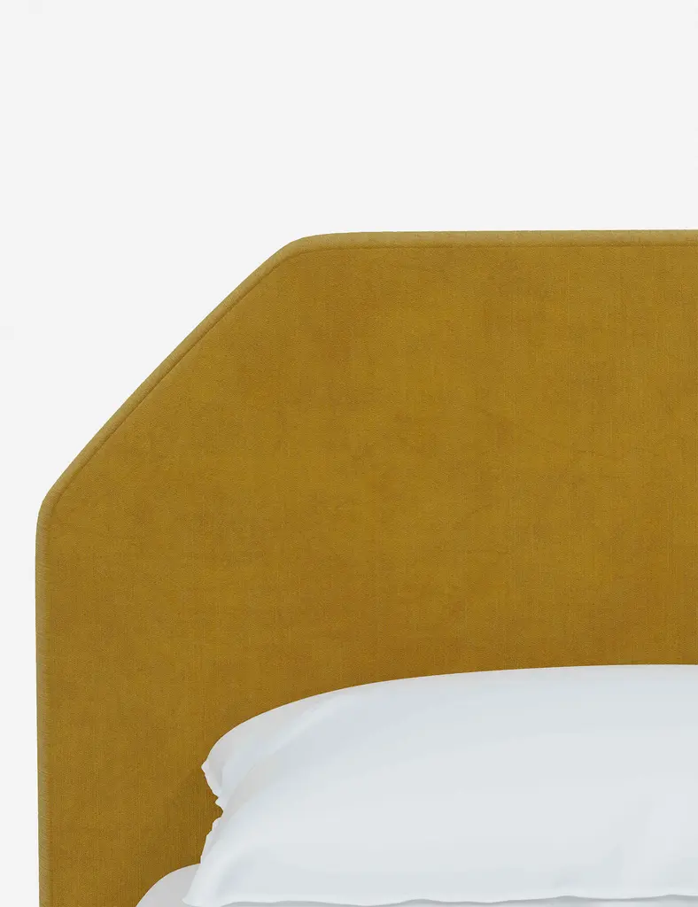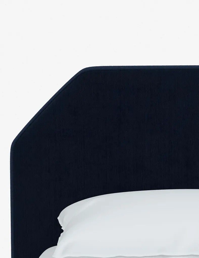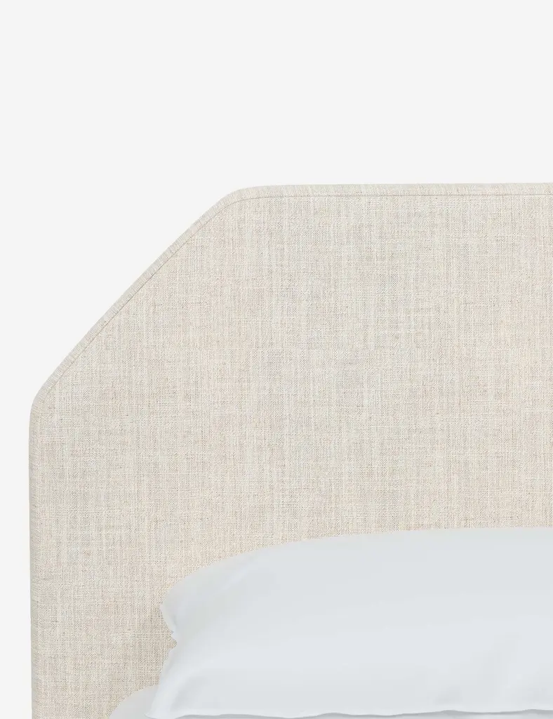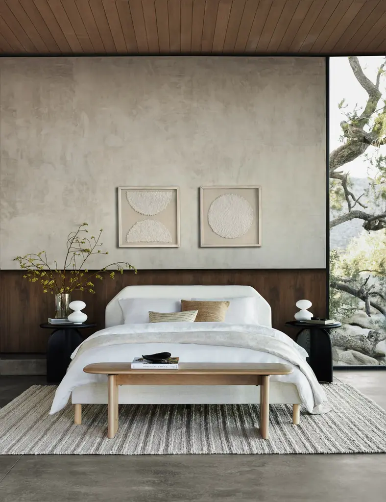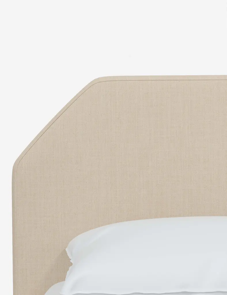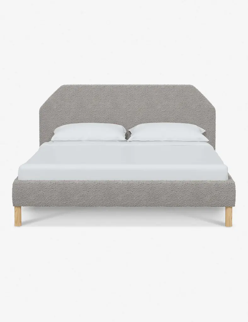 Geometric lines set off a streamlined, modern silhouette in this exclusive bed frame with headboard design tailored for versatile styling potential. This platform bed is raised from the ground with bare, pinewood legs and trimly upholstered from footboard to headboard to offer your space a fresh focal point that will transform your look.