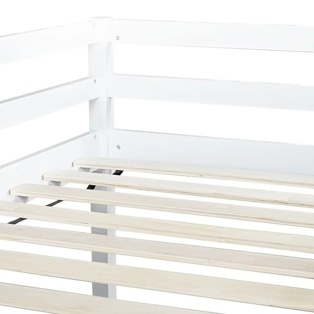 Kumasinova Twin Size Bunk Bed,solid Rubberwood Low Loft Bed For Teens,space-saving Loft Bed Platform With Slide,guardrails&ladder,250lbs Max,white