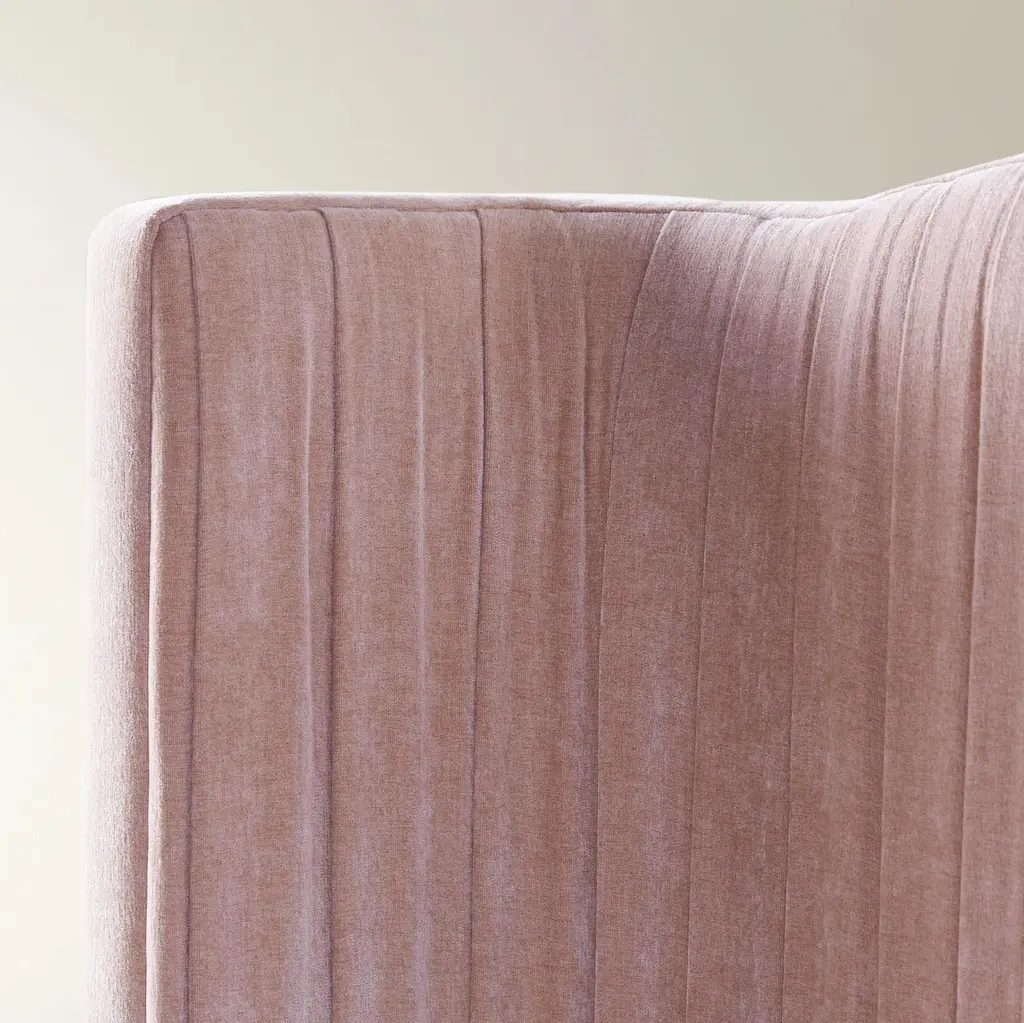 Who knew a bed could be a bombshell beauty comparable to Marilyn Monroe or Sophia Loren? Boasting an elegantly curved, wingback silhouette and hand-pleated upholstery, our handcrafted Larissa bed adds dramatic height and glamorous style to the bedroom, while its kiln-dried hardwood frame offers long-lasting support. Shown in Kenley Chenille Quartz.Z Gallerie exclusiveCustomize it! Available in over 20 fabrics. Custom Orders: Custom Furniture is manufactured especially for you, which is why we do not accept cancellations, exchanges, or returns.