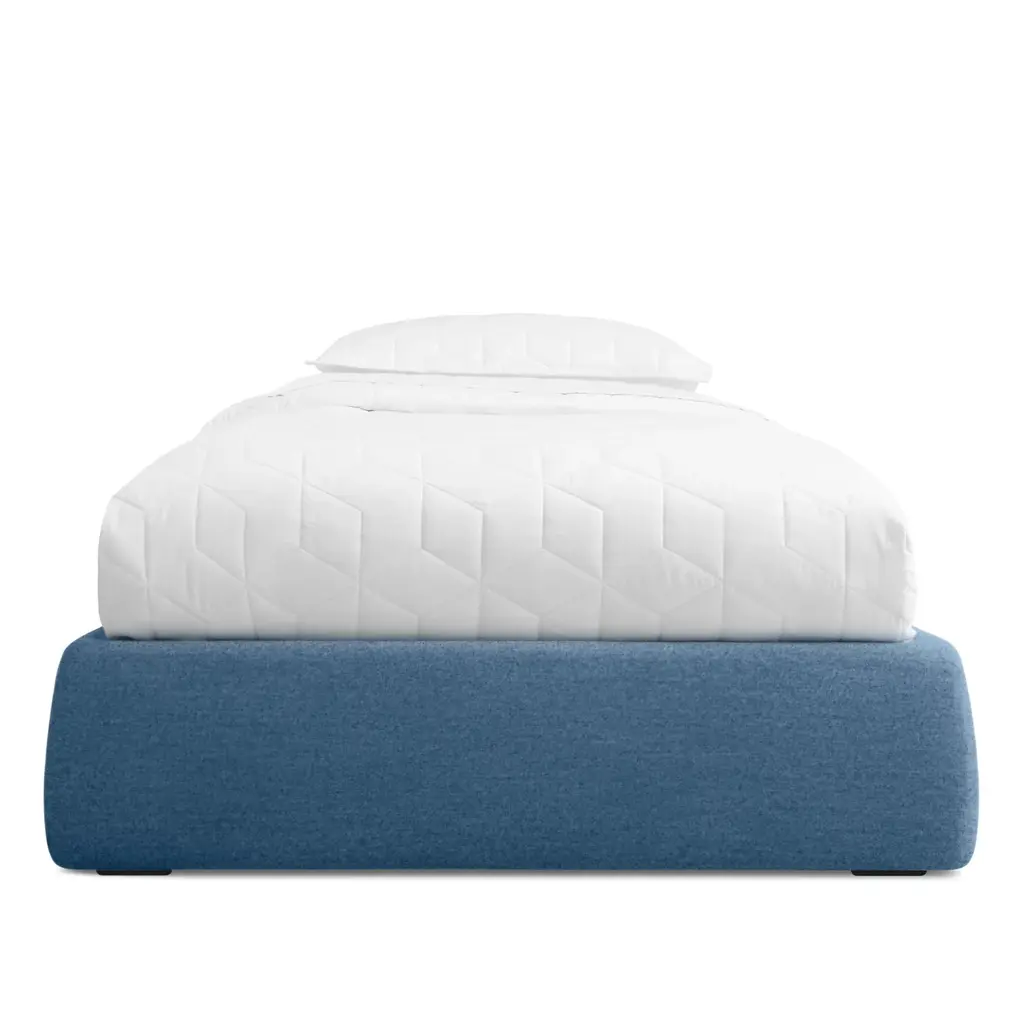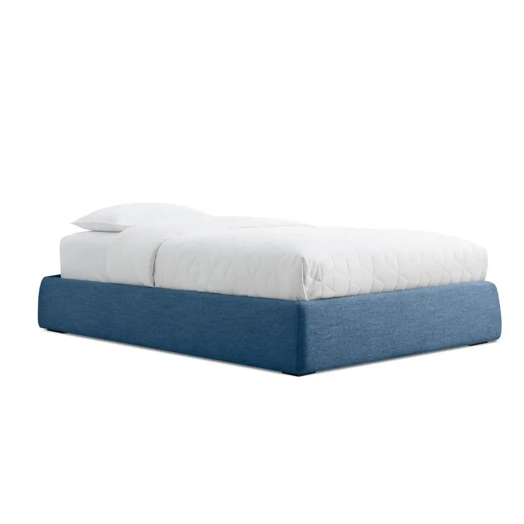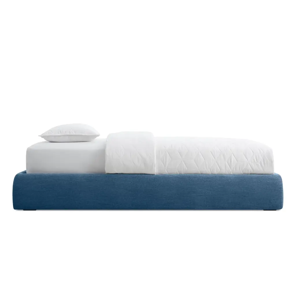 Pragmatic and space saving without being cold and austere, the Lid Platform bed’s gently curved soft padded rails give presence and warmth to a compact sleep solution. With slipcovered upholstery.