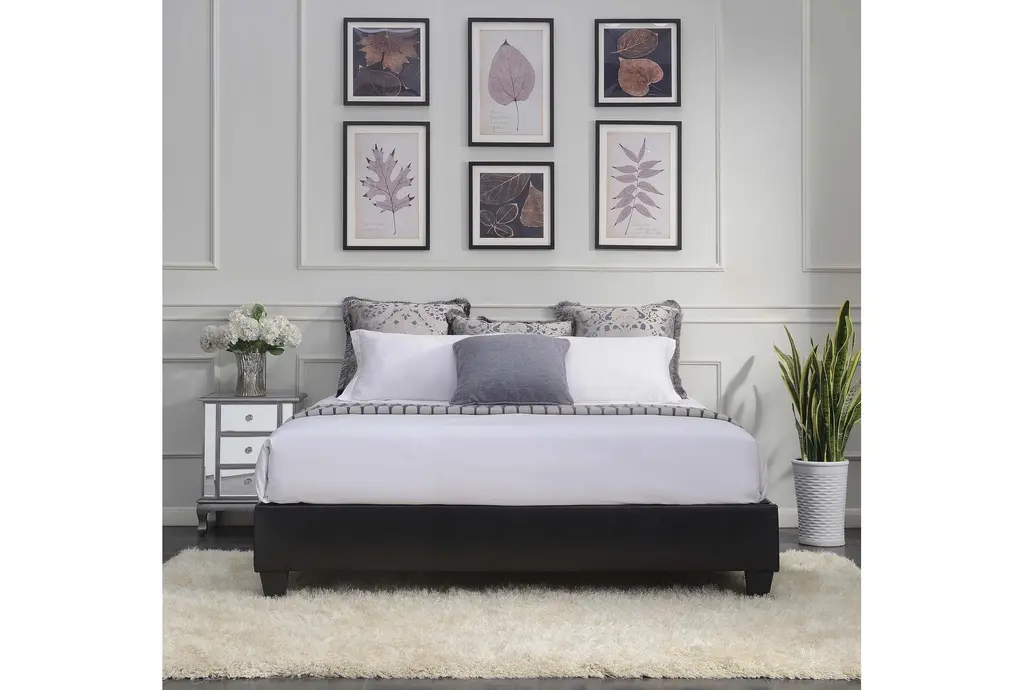 Lily Black King Faux Leather Platform Bed