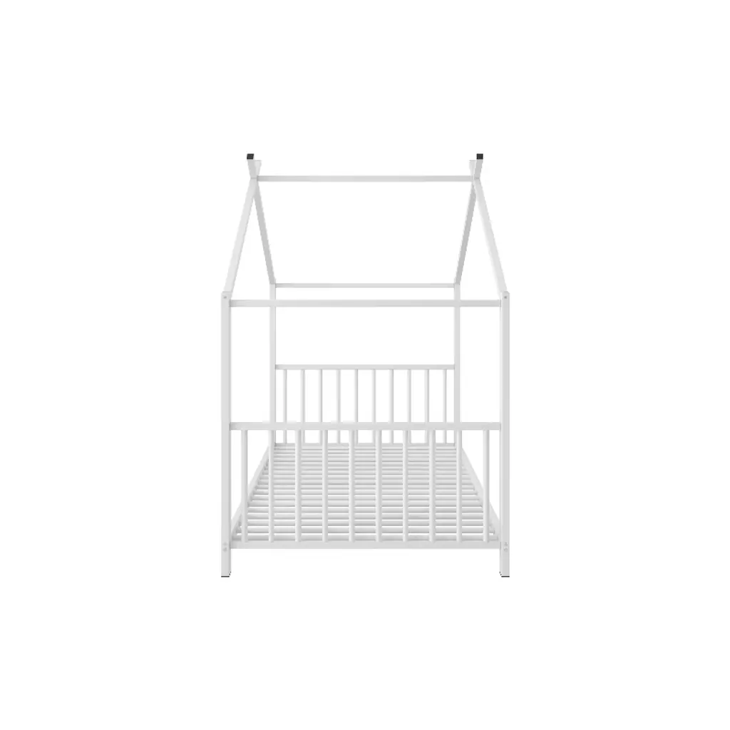 Lyngins Twin Size Bed Frame, Metal House Platform Bed Frame, No Box Spring Needed, Kids Bed Frame For Bedroom, Kids Floor Bed Frame, White Toddler Bed
