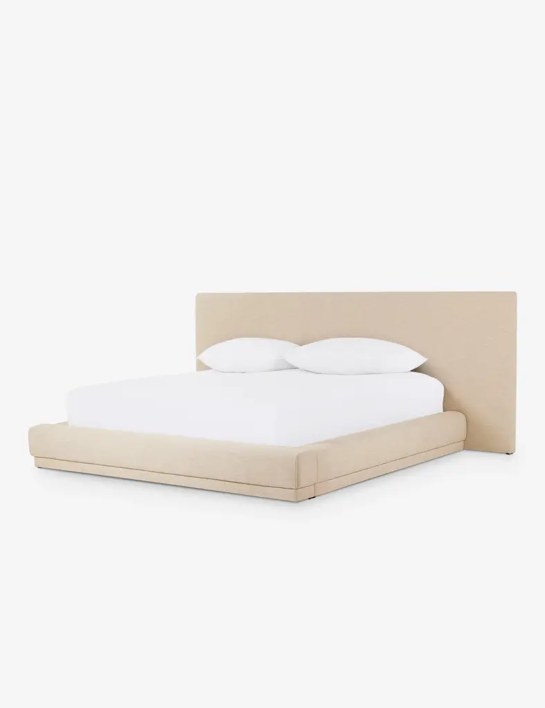 Modern Italian styling brings tailored sophistication to this upholstered bed. Lightly textured fabric covers the bed frame and oversized headboard with a luxurious look and feel, anchoring your room with understated elegance.
