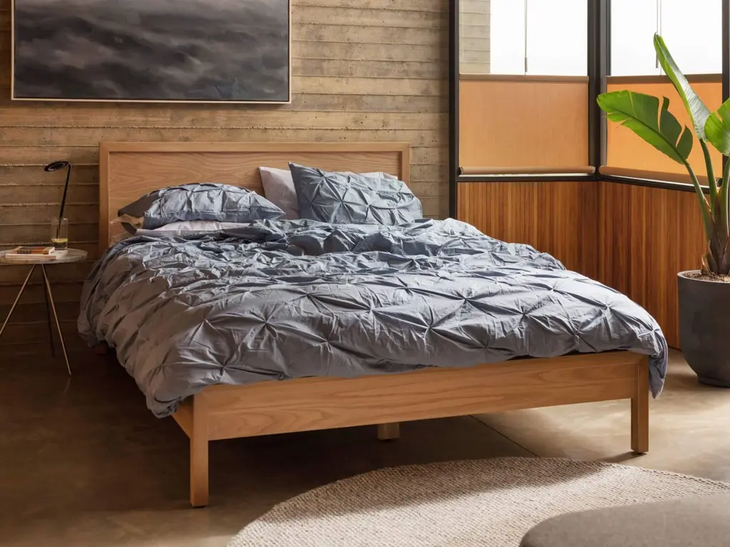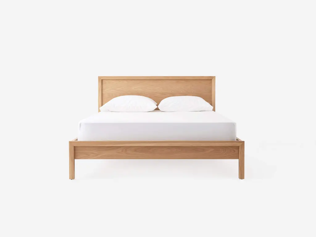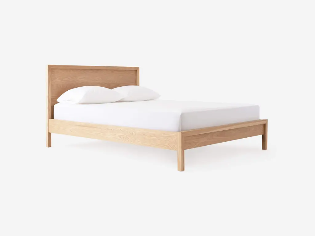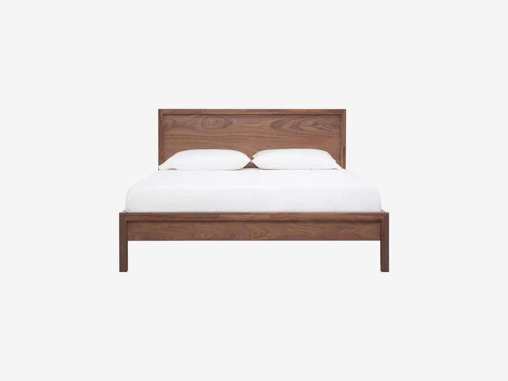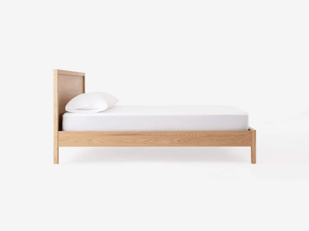 The modern Marcel Bed is a timeless design that highlights the natural warmth and detailing of wood with a mid-century modern appeal. Its height allows for storage underneath, making it perfect for any bedroom.