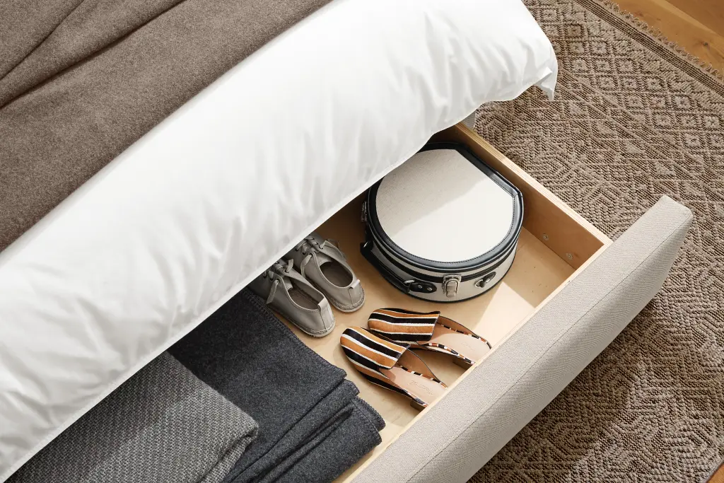 The Marlo storage bed features the same distinctive silhouette as our original version, but a hidden storage drawer that pulls out from the foot of the bed makes it as functional as it is stylish.