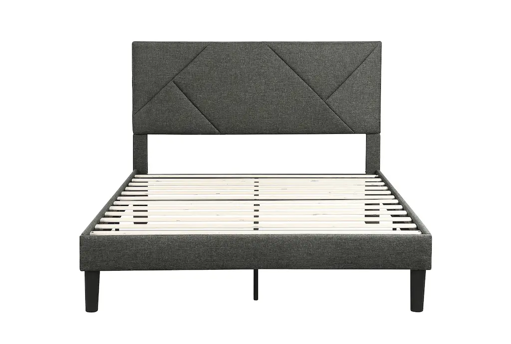 This Miles Queen Upholstered Platform Bed exudes contemporary style with its sleek platform design and fabric upholstery in a calming shade of grey. Crafted with wood and requiring assembly, this bed is perfect for any bedroom and ships conveniently via parcel shipping.
