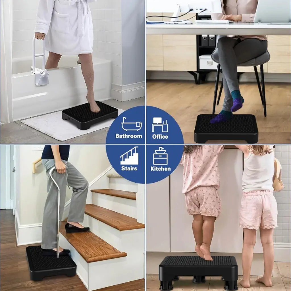 Safe and Stable Support The Adjustable Non-Slip One-Step Stool offers adults and seniors a reliable boost for cars, beds, doorways, stairs, or other daily tasks. Its heavy-duty frame and textured surface ensure firm grip indoors or outdoors. Adjustable Height for Every Need Easily adjust the step height from 2.76 to 3.94 inches to match different surfaces and user preferences, providing customized support wherever it’s needed. Durable and Practical Built with sturdy materials for long-lasting use, this step stool combines safety, versatility, and convenience in one compact design.