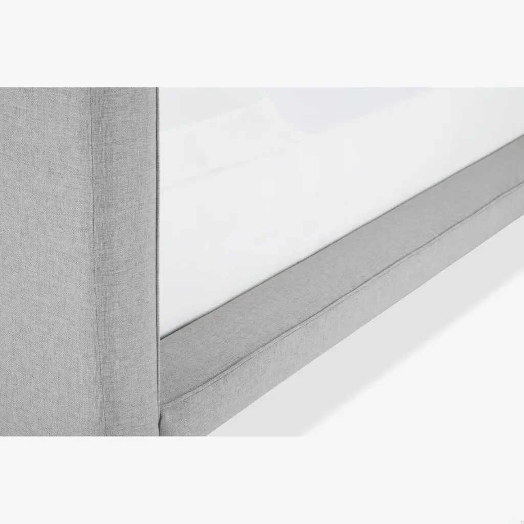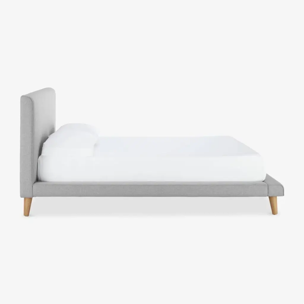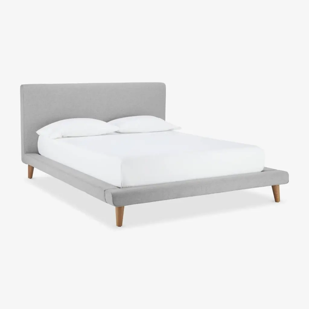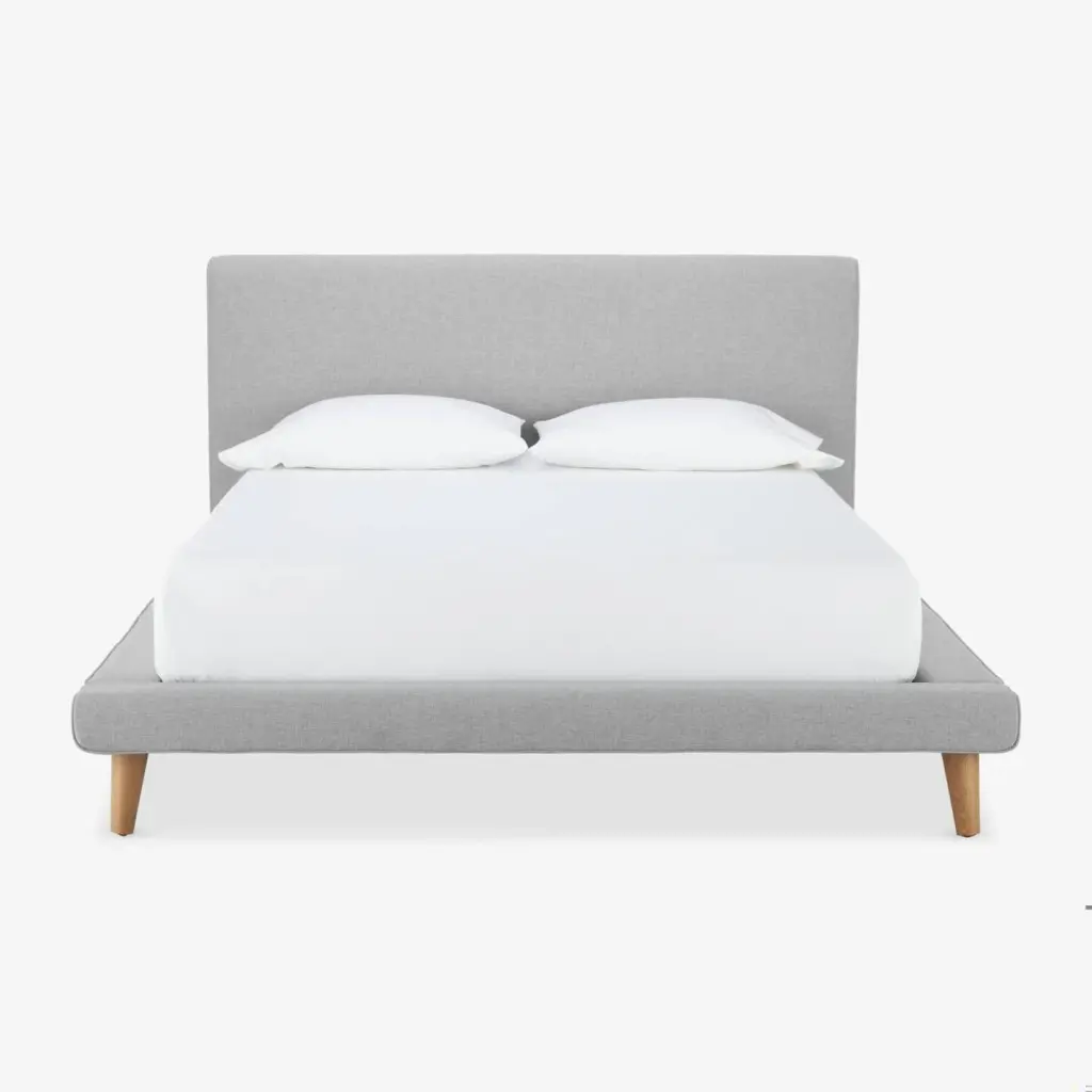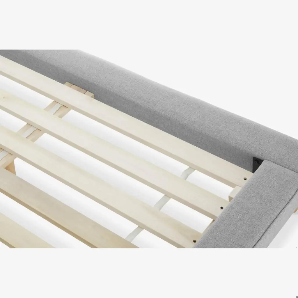 With angled solid wood legs and welted details along the corners, this bed is a super polished addition to any modern bedroom- don't be surprised if you find yourself hitting the snooze button. Bed clearance 8". Distance between slats 3". Mattress not included.