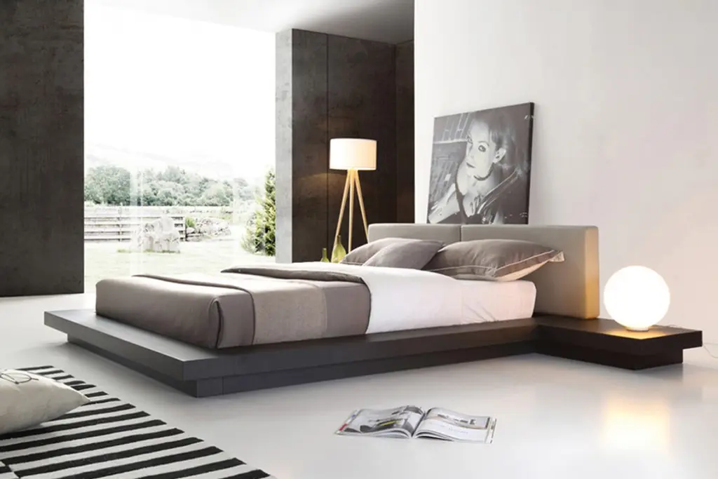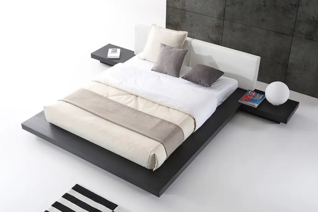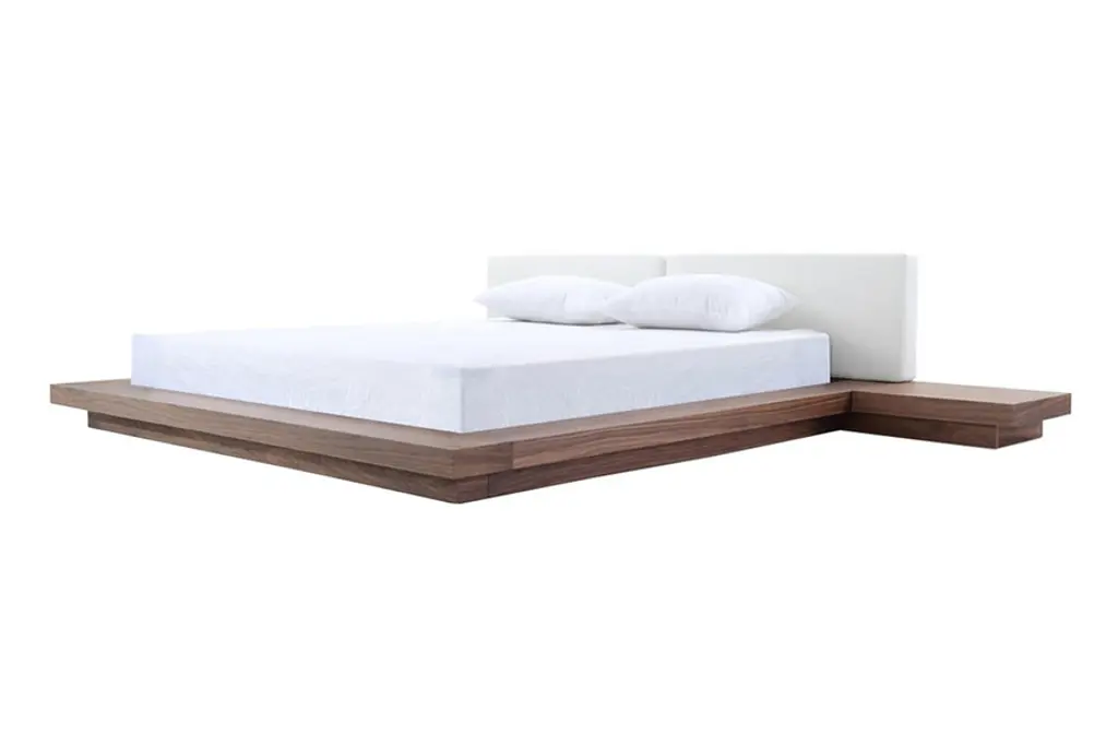 Low-profile design, high impact in your modern space. The Modrest Opal Platform Bed by VIG Furniture brings crisp, clean Japanese styling to the contemporary bedroom by building a strong frame of sturdy MDF and adding a touch of tactile appeal with luxe leather over a padded headboard. With your choice of sizes and bold yet easy-to-incorporate, rich, and glossy finishes, the Modrest Opal, complete with attached nightstand surfaces and stable slats that render a box spring unnecessary, is an all-in-one way to bring simple yet sophisticated low-key luxury to your stylish sleeping quarters.Queen: 124.5"w x 93"d x 26"h, 324 lbs East King: 140.5"w x 93"d x 26"h, 362 lbs Nightstand (x2): 24"w x 15"d x 6"h (Nightstands are included in the measurement) Headboard Height: 26.25" Frame Height: 6.5" Under Bed Clearance: 3.5"