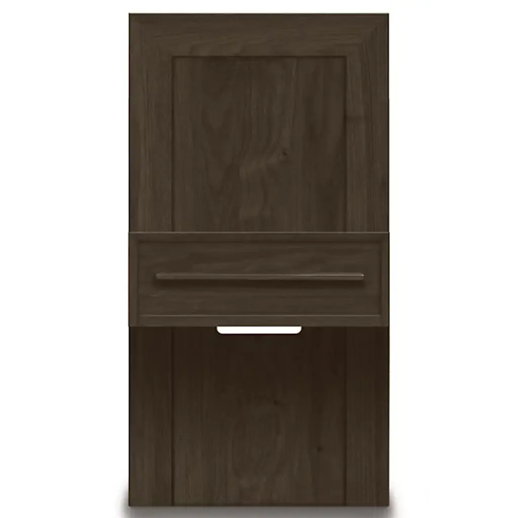 The Copeland Furniture Moduluxe 29-Inch Box Nightstand for Platform Bed pairs a convenient bedside surface with convenient storage (in the form of a single drawer). It is made out of solid hardwood and matching veneer to coordinate with the Moduluxe bed (with 29-inch high headboard) to which it's attached.