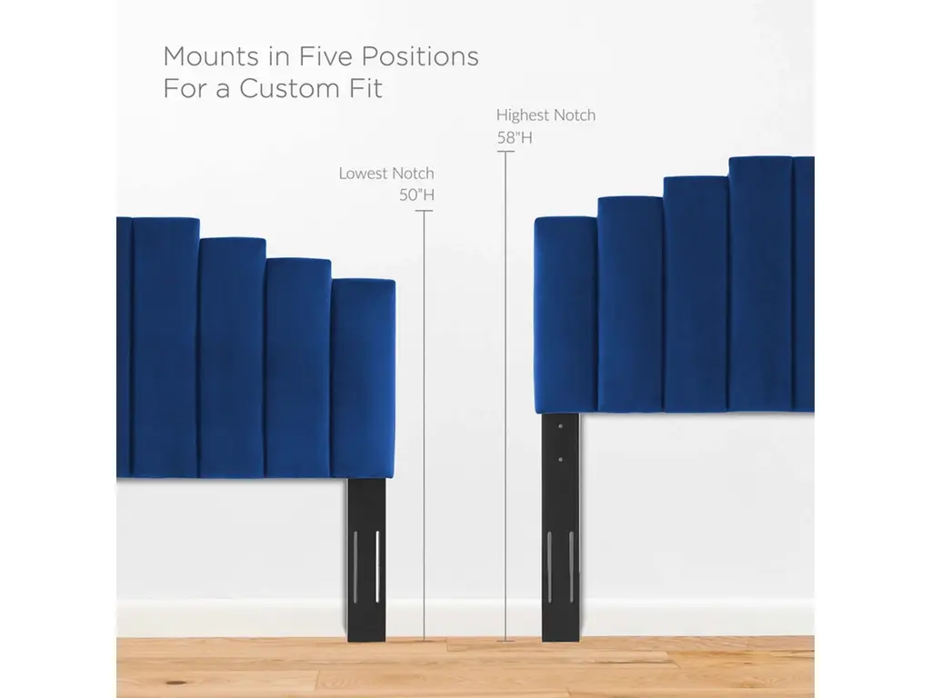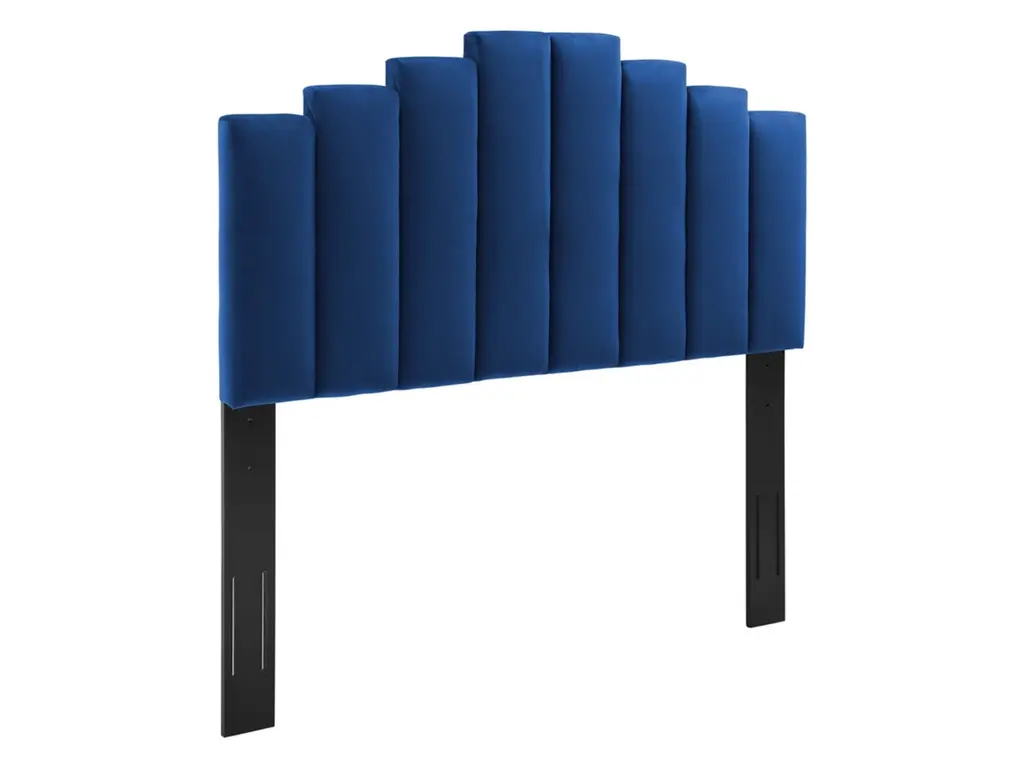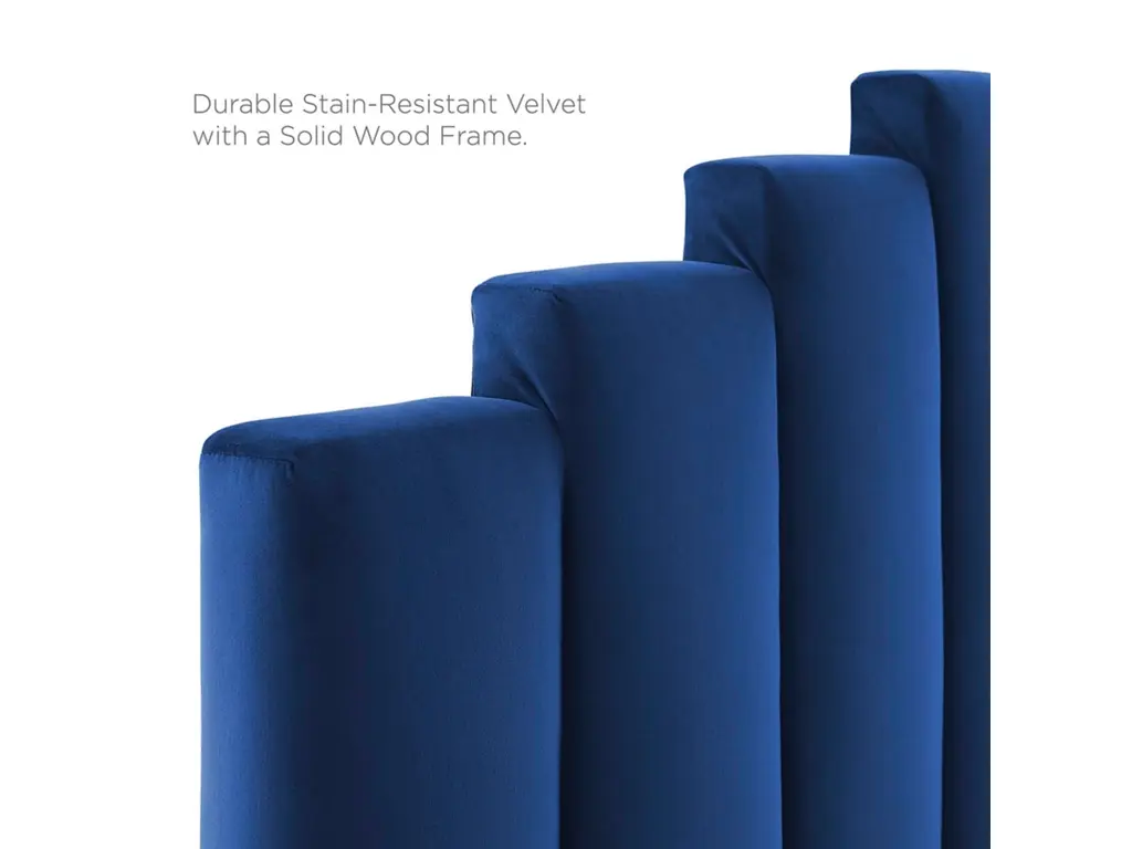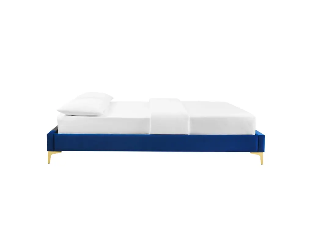 Refresh a guest bedroom or teenager's room with the luxurious style of the Elise Performance Velvet Full Platform Bed. Abounding in glam deco style, the full headboard of this platform bed features a modern twist on classic channel tufting with velvety panels ascending upwards in an arching design. Resting atop gold metal legs, this upholstered bed is covered in soft, stain-resistant performance velvet and dense foam padding. This full size bed is a sturdy mattress foundation for memory foam, innerspring, latex, and hybrid mattresses. With supporting legs and a reinforced center beam, this upholstered bed is complete with a poplar wood slat support system that offers lasting stability. Assembly required. Full Bed Weight Capacity: 800 lbs.