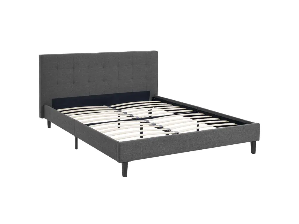 Inspire sweet dreams with the Linnea Platform Bed. Charmingly designed with grace and distinction, Linnea comes with an upholstered polyester fabric base and tufted headboard, solid wood legs, and a slatted wood support system that eliminates the need for a box spring. Complete with a reinforced center beam with supporting legs for maximal stability, Linnea accommodates the various mattress types on the market such as memory foam, spring, latex, and hybrid. Imparting a heartening chic-luxe look, Linnea is a well-made bed perfect for the instant update or bedroom transformation. Weight capacity up to 1300 lbs. Mattress Not Included.