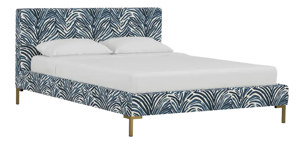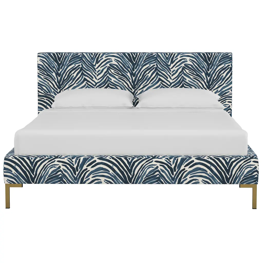 Norah Platform Bed In Blue Washed Zebra, Full/double