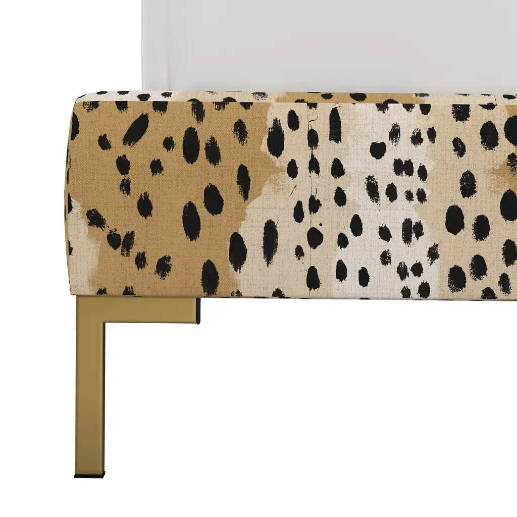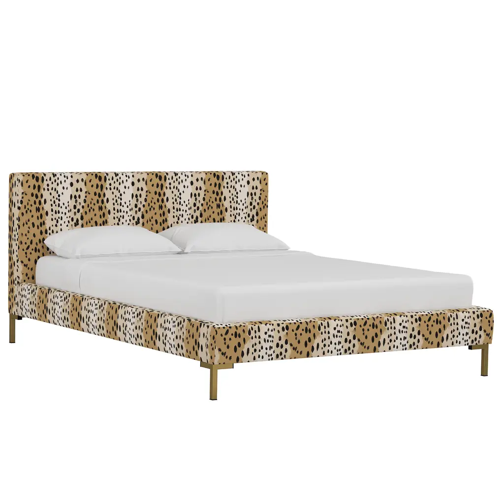 Norah Platform Bed In Caramel Linen Leopard, Queen