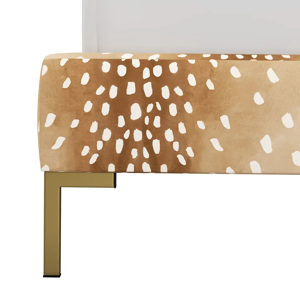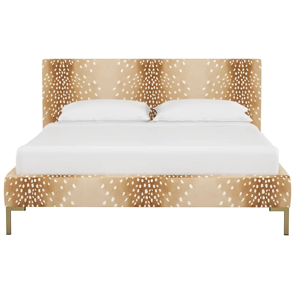 This low profile fully upholstered platform bed is a perfect piece for anyone looking to add a modern statement piece to their bedroom decor. The metal Y legs combined with the upholstered frame provide a unique combination of comfort and industrial design that pairs perfectly together. Complete with a wooden slat system that eliminates the need for a box spring - the bed is functional while being trend setting. The handmade platform bed is padded in soft plush foam and upholstered in a wide variety of color options allowing you to make it your own. Perfect for a guest room, vacation home, or any bedroom transformation. Manufactured in Illinois. Care Instructions: Spot Clean Only Please note: Mattress and bedding not included