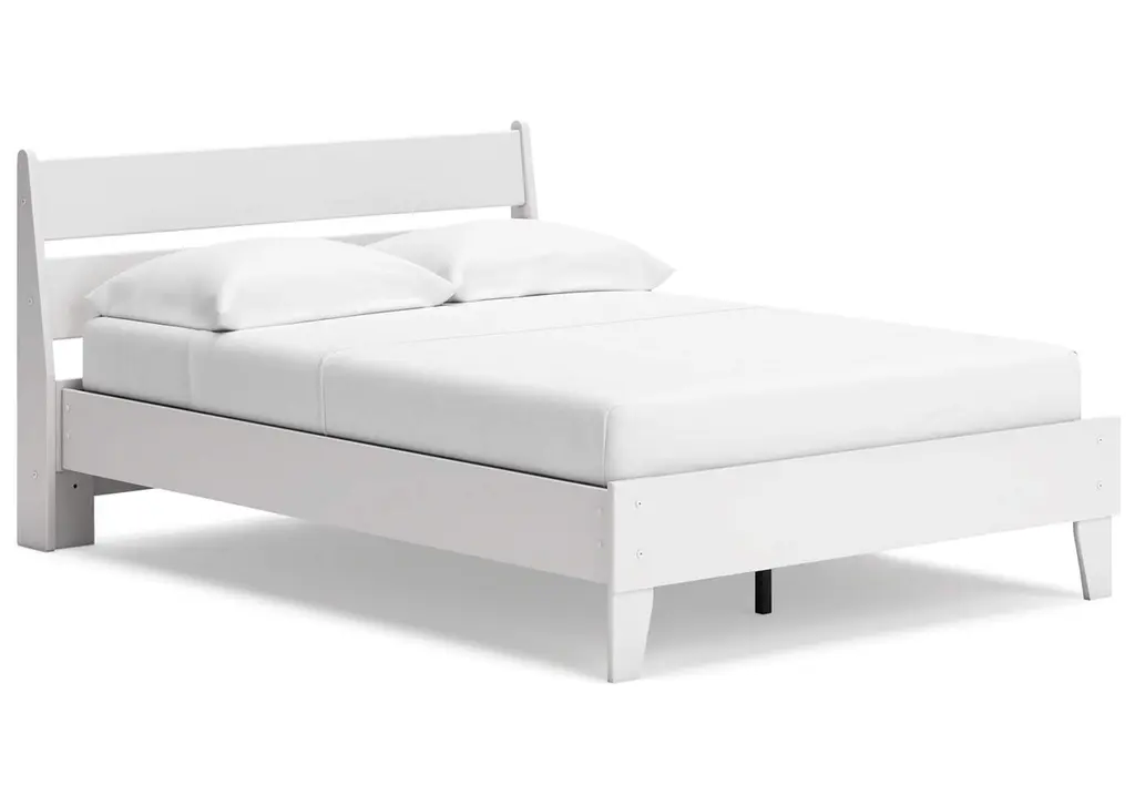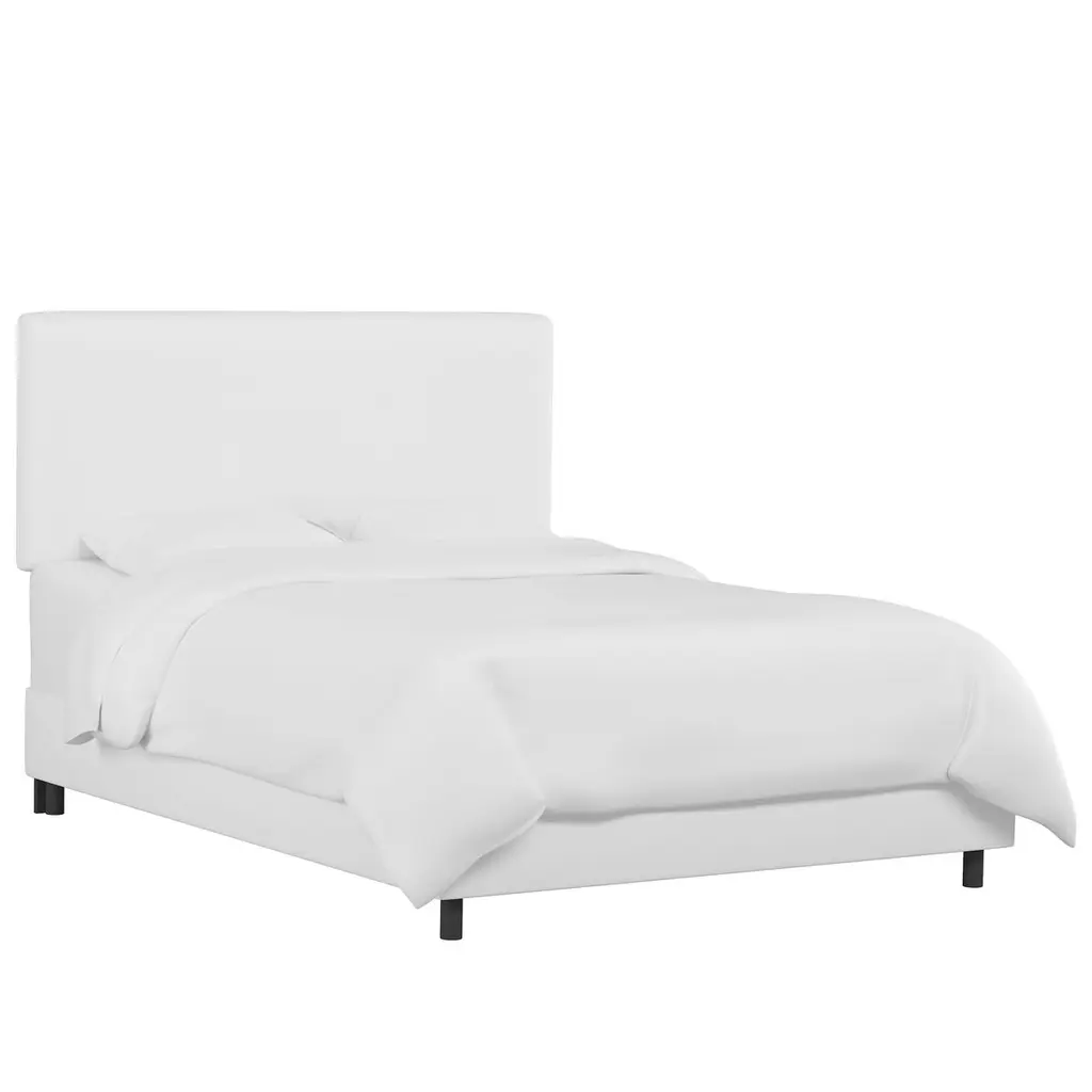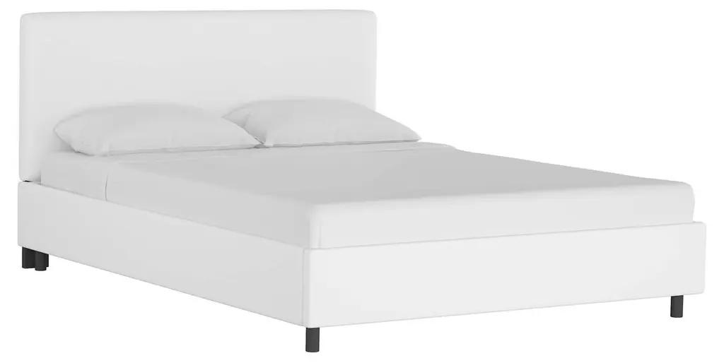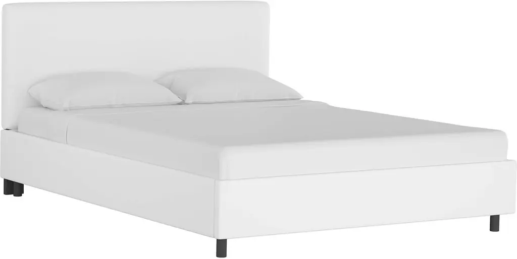 A clean-lined silhouette and amply padded linen-blend upholstery give this platform bed a tailored look, beautifully offset by neutral linen-blend fabric. Mattress required. Handcrafted in the USA.
