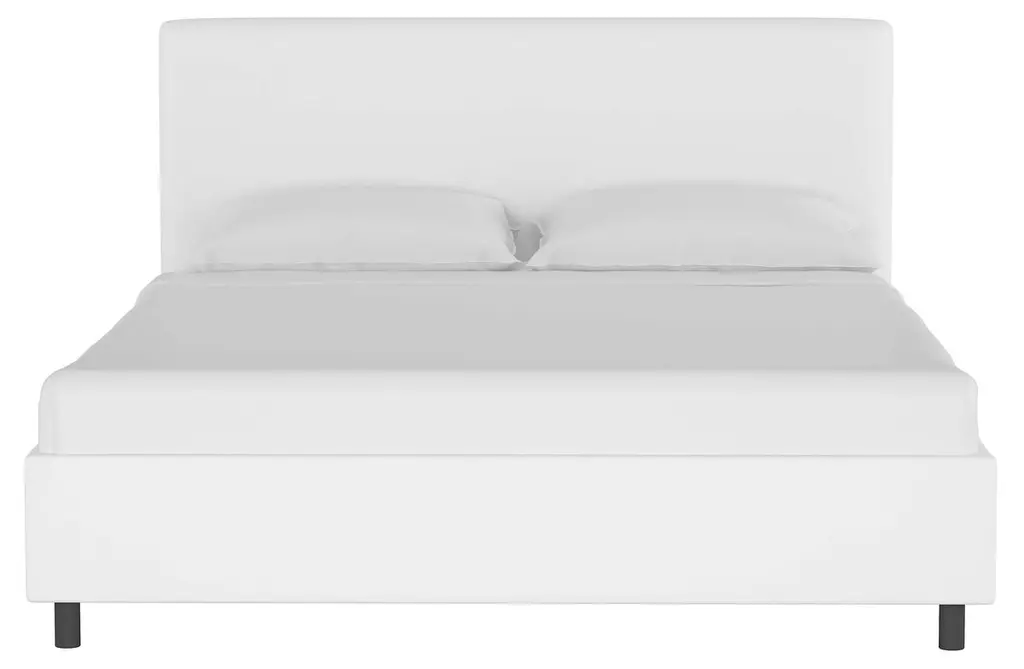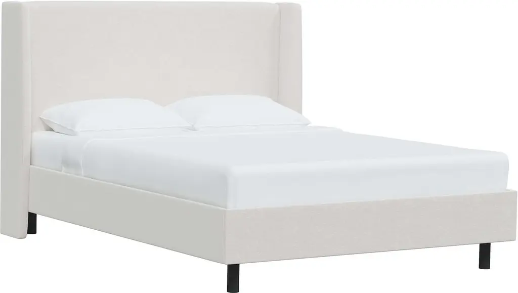 A clean-lined silhouette and amply padded linen-blend upholstery give this platform bed a tailored look, beautifully offset by neutral linen-blend fabric. Mattress required. Handcrafted in the USA.