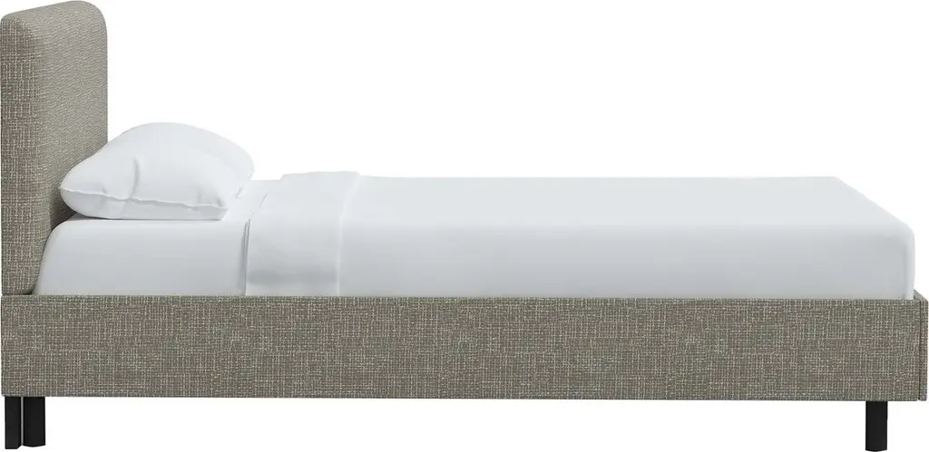 With its clean lines and handsome woven upholstery, this bed will complement just about any bedroom. Made in the USA, it has an amply cushioned headboard to provide comfortable support for those who like to read or watch TV in bed. Because the bed comes with a slat system, no box spring is required.