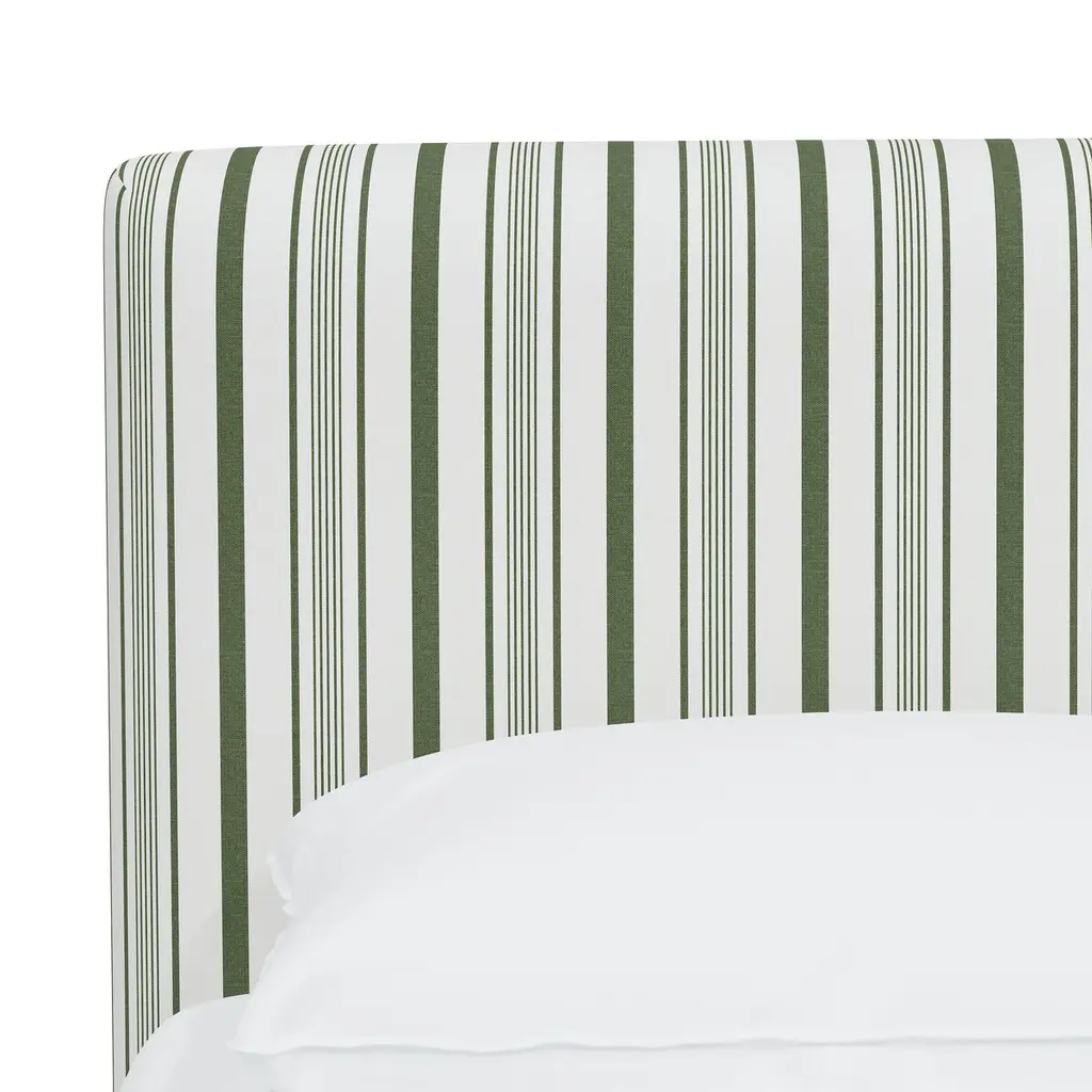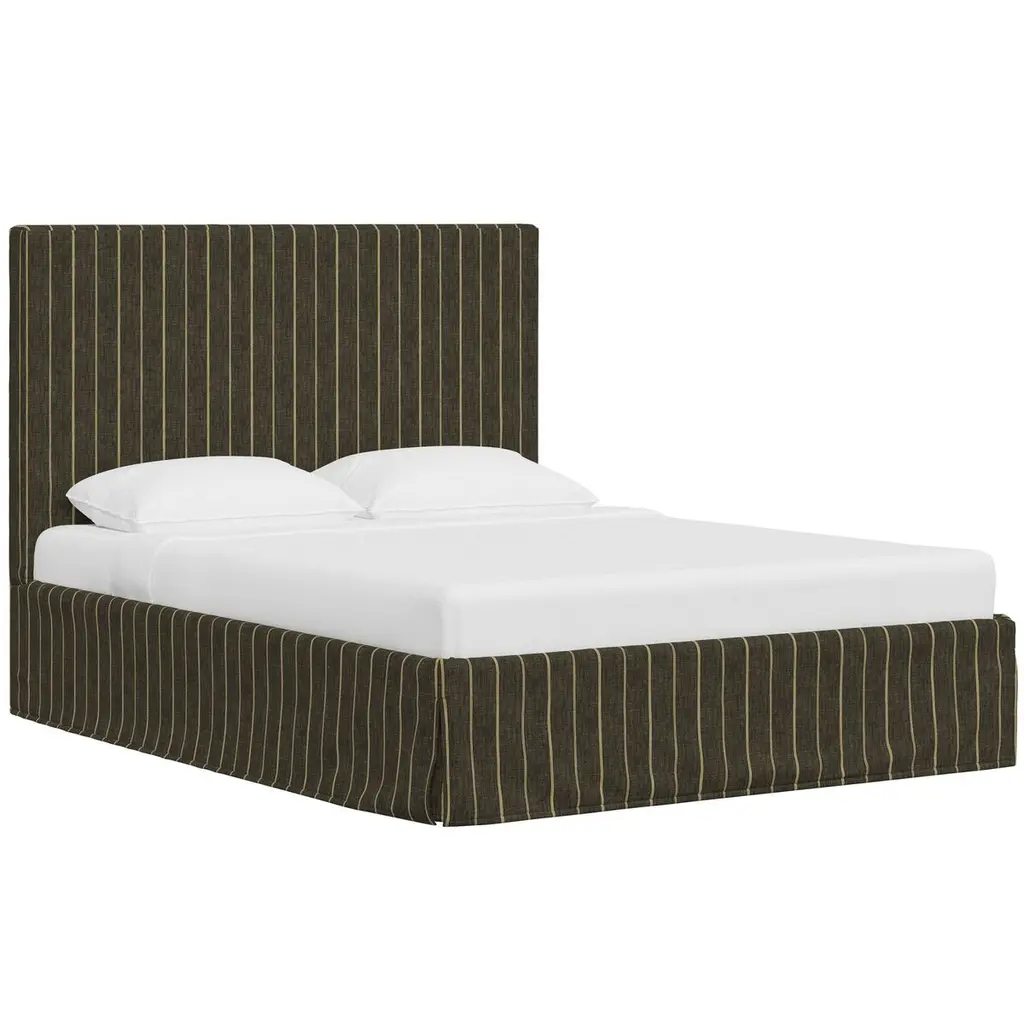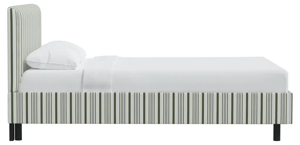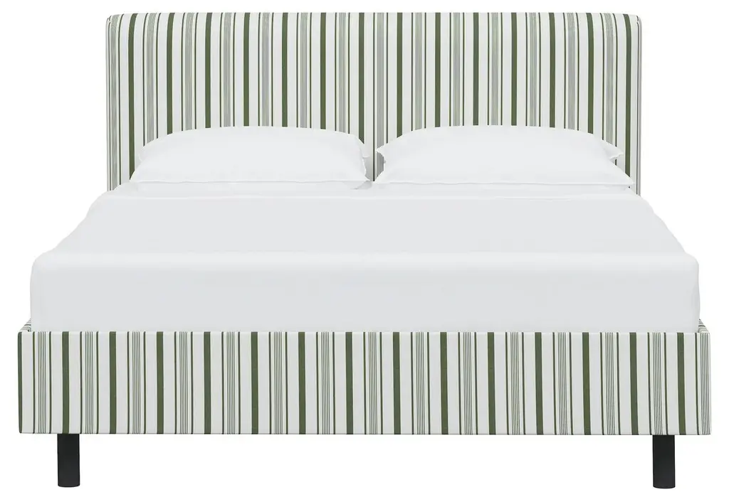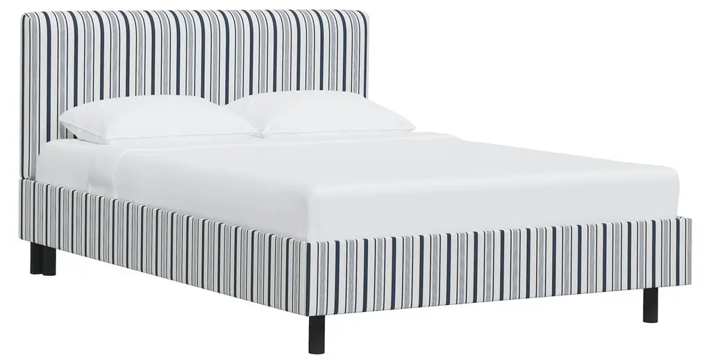 Exclusive to One Kings Lane: Stripes with haberdashery flair distinguish this clean-lined bed. The amply padded headboard is ideal for anyone who enjoys reading or watching TV in bed.