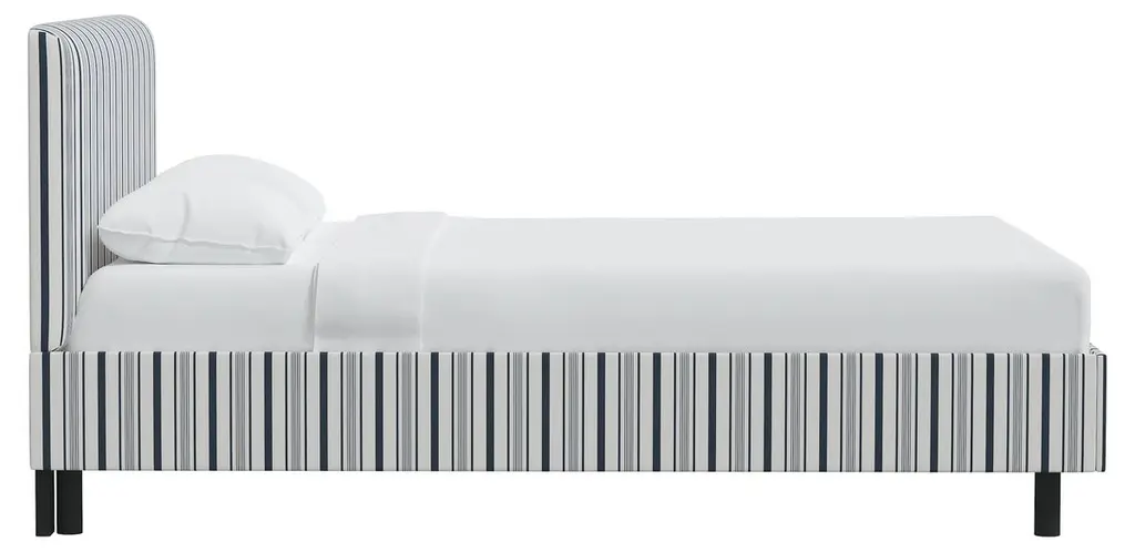 Exclusive to One Kings Lane: Stripes with haberdashery flair distinguish this clean-lined bed. The amply padded headboard is ideal for anyone who enjoys reading or watching TV in bed.