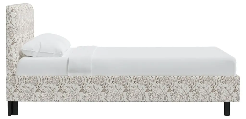 Exclusive to One Kings Lane: An oversize floral pattern rendered in neutral tones distinguishes this clean-lined bed. The amply padded headboard is ideal for anyone who enjoys reading or watching TV in bed.