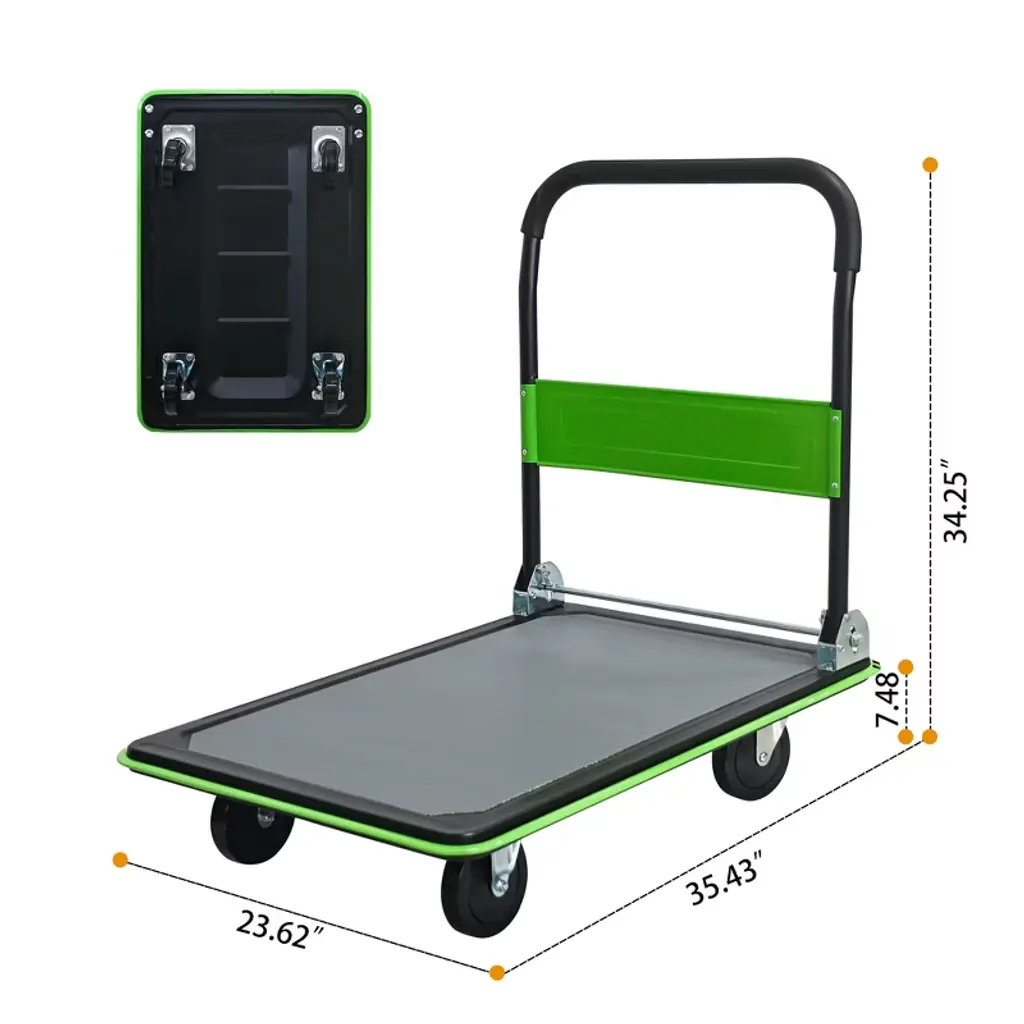 Orrd 660lbs Heavy Duty Flatbed Cart, Foldable Platform Hand Truck With 360° Swivel Wheels, Green