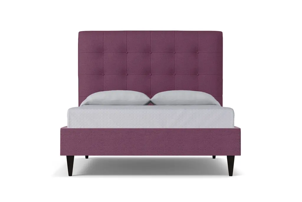The Palmer Drive Upholstered Platform Bed is an utterly contemporary bed with a nod to the timeless stylings of Mid Century Modern design. This eye-catching, fully-upholstered platform bed features a button-tufted headboard and elegant conical legs. These details provide the sharp, clean, contemporary look that define the Palmer. Your pets will also appreciate the 7"h legs, which provide plenty of room for exploration and afternoon naps. The Palmer, designed by Apt2B resident designer Kyle Schuneman, is fully-upholstered, which means it can be admired from every angle. No detail of the Palmer Upholstered Bed has been overlooked - this upholstered bed is all buttoned-up and ready to ship out to your home! The Palmer Drive Upholstered Platform Bed is one of Apt2B's fantastic beds that we actually build to order in our downtown Los Angeles factory (made in the USA!). The Palmer Drive is available as a Queen size, King size, California King size, and a Full size by request! Although the Palmer is a true platform bed with wooden slats, it does require a bunkie board or box spring for added support. The Palmer Drive is also available in your choice of fabrics. You can choose from any Apt2B's vast selection of kid friendly and pet friendly fabric offerings! Whether you're looking for a grey upholstered bed or a pink upholstered bed the Palmer Drive has got you covered.
