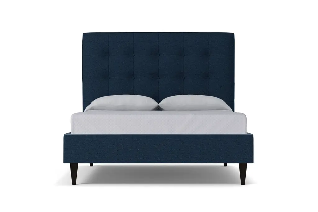 The Palmer Drive Upholstered Platform Bed is an utterly contemporary bed with a nod to the timeless stylings of Mid Century Modern design. This eye-catching, fully-upholstered platform bed features a button-tufted headboard and elegant conical legs. These details provide the sharp, clean, contemporary look that define the Palmer. Your pets will also appreciate the 7"h legs, which provide plenty of room for exploration and afternoon naps. The Palmer, designed by Apt2B resident designer Kyle Schuneman, is fully-upholstered, which means it can be admired from every angle. No detail of the Palmer Upholstered Bed has been overlooked - this upholstered bed is all buttoned-up and ready to ship out to your home! The Palmer Drive Upholstered Platform Bed is one of Apt2B's fantastic beds that we actually build to order in our downtown Los Angeles factory (made in the USA!). The Palmer Drive is available as a Queen size, King size, California King size, and a Full size by request! Although the Palmer is a true platform bed with wooden slats, it does require a bunkie board or box spring for added support. The Palmer Drive is also available in your choice of fabrics. You can choose from any Apt2B's vast selection of kid friendly and pet friendly fabric offerings! Whether you're looking for a grey upholstered bed or a pink upholstered bed the Palmer Drive has got you covered.