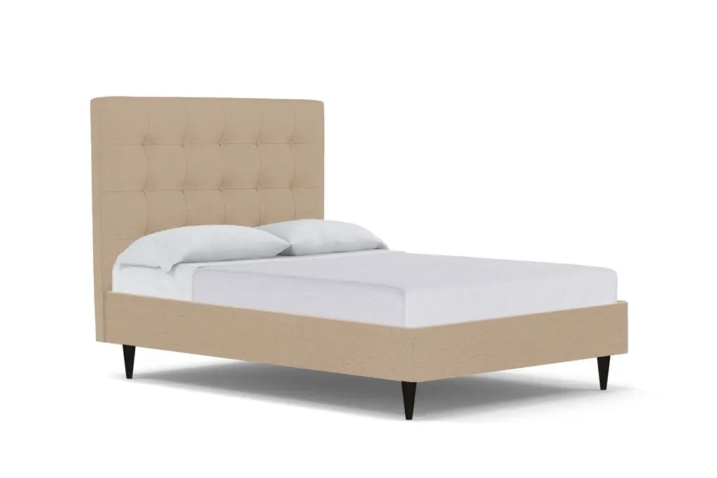 The Palmer Drive Upholstered Platform Bed is an utterly contemporary bed with a nod to the timeless stylings of Mid Century Modern design. This eye-catching, fully-upholstered platform bed features a button-tufted headboard and elegant conical legs. These details provide the sharp, clean, contemporary look that define the Palmer. Your pets will also appreciate the 7"h legs, which provide plenty of room for exploration and afternoon naps. The Palmer, designed by Apt2B resident designer Kyle Schuneman, is fully-upholstered, which means it can be admired from every angle. No detail of the Palmer Upholstered Bed has been overlooked - this upholstered bed is all buttoned-up and ready to ship out to your home! The Palmer Drive Upholstered Platform Bed is one of Apt2B's fantastic beds that we actually build to order in our downtown Los Angeles factory (made in the USA!). The Palmer Drive is available as a Queen size, King size, California King size, and a Full size by request! Although the Palmer is a true platform bed with wooden slats, it does require a bunkie board or box spring for added support. The Palmer Drive is also available in your choice of fabrics. You can choose from any Apt2B's vast selection of kid friendly and pet friendly fabric offerings! Whether you're looking for a grey upholstered bed or a pink upholstered bed the Palmer Drive has got you covered.