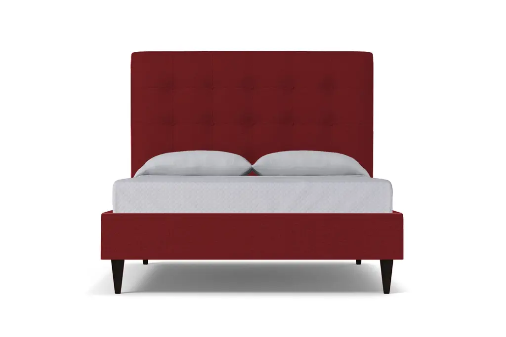 The Palmer Drive Upholstered Platform Bed is an utterly contemporary bed with a nod to the timeless stylings of Mid Century Modern design. This eye-catching, fully-upholstered platform bed features a button-tufted headboard and elegant conical legs. These details provide the sharp, clean, contemporary look that define the Palmer. Your pets will also appreciate the 7"h legs, which provide plenty of room for exploration and afternoon naps. The Palmer, designed by Apt2B resident designer Kyle Schuneman, is fully-upholstered, which means it can be admired from every angle. No detail of the Palmer Upholstered Bed has been overlooked - this upholstered bed is all buttoned-up and ready to ship out to your home! The Palmer Drive Upholstered Platform Bed is one of Apt2B's fantastic beds that we actually build to order in our downtown Los Angeles factory (made in the USA!). The Palmer Drive is available as a Queen size, King size, California King size, and a Full size by request! Although the Palmer is a true platform bed with wooden slats, it does require a bunkie board or box spring for added support. The Palmer Drive is also available in your choice of fabrics. You can choose from any Apt2B's vast selection of kid friendly and pet friendly fabric offerings! Whether you're looking for a grey upholstered bed or a pink upholstered bed the Palmer Drive has got you covered.