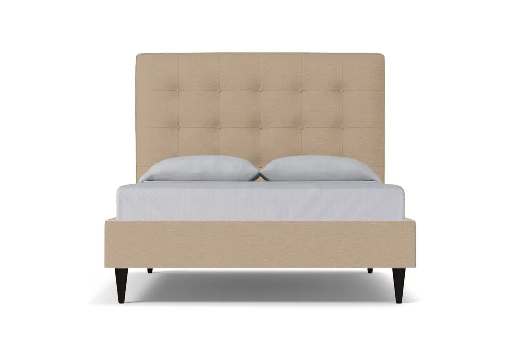 The Palmer Drive Upholstered Platform Bed is an utterly contemporary bed with a nod to the timeless stylings of Mid Century Modern design. This eye-catching, fully-upholstered platform bed features a button-tufted headboard and elegant conical legs. These details provide the sharp, clean, contemporary look that define the Palmer. Your pets will also appreciate the 7"h legs, which provide plenty of room for exploration and afternoon naps. The Palmer, designed by Apt2B resident designer Kyle Schuneman, is fully-upholstered, which means it can be admired from every angle. No detail of the Palmer Upholstered Bed has been overlooked - this upholstered bed is all buttoned-up and ready to ship out to your home! The Palmer Drive Upholstered Platform Bed is one of Apt2B's fantastic beds that we actually build to order in our downtown Los Angeles factory (made in the USA!). The Palmer Drive is available as a Queen size, King size, California King size, and a Full size by request! Although the Palmer is a true platform bed with wooden slats, it does require a bunkie board or box spring for added support. The Palmer Drive is also available in your choice of fabrics. You can choose from any Apt2B's vast selection of kid friendly and pet friendly fabric offerings! Whether you're looking for a grey upholstered bed or a pink upholstered bed the Palmer Drive has got you covered.
