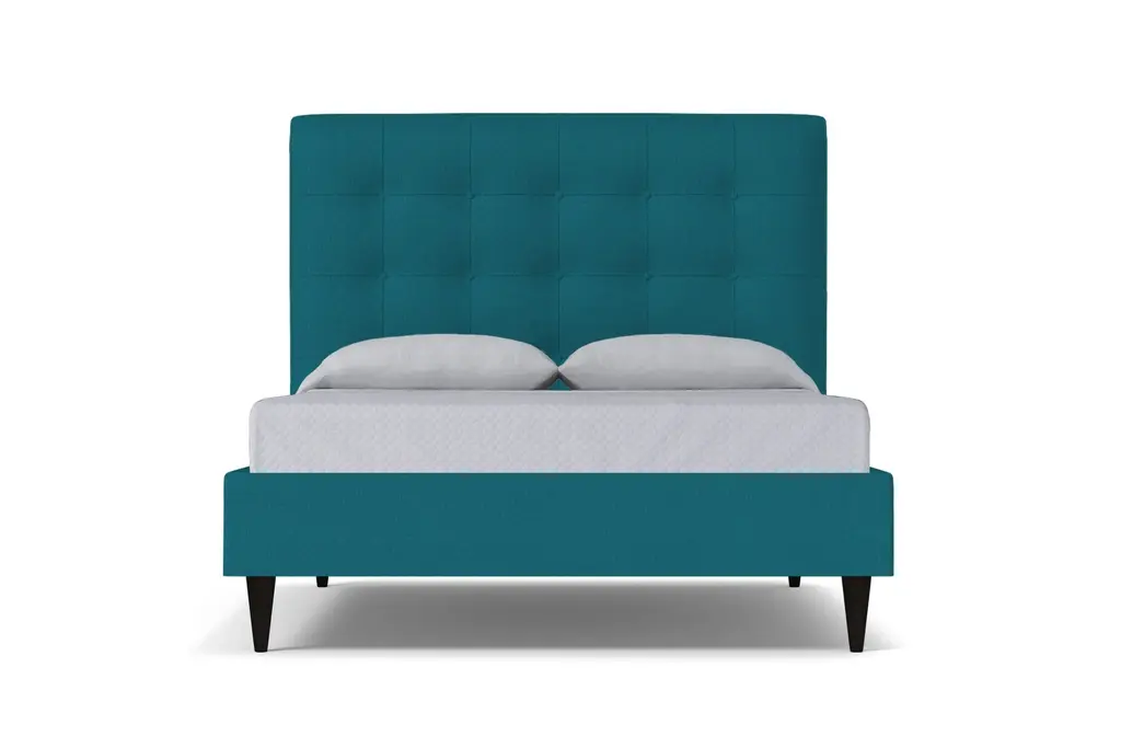 The Palmer Drive Upholstered Platform Bed is an utterly contemporary bed with a nod to the timeless stylings of Mid Century Modern design. This eye-catching, fully-upholstered platform bed features a button-tufted headboard and elegant conical legs. These details provide the sharp, clean, contemporary look that define the Palmer. Your pets will also appreciate the 7"h legs, which provide plenty of room for exploration and afternoon naps. The Palmer, designed by Apt2B resident designer Kyle Schuneman, is fully-upholstered, which means it can be admired from every angle. No detail of the Palmer Upholstered Bed has been overlooked - this upholstered bed is all buttoned-up and ready to ship out to your home! The Palmer Drive Upholstered Platform Bed is one of Apt2B's fantastic beds that we actually build to order in our downtown Los Angeles factory (made in the USA!). The Palmer Drive is available as a Queen size, King size, California King size, and a Full size by request! Although the Palmer is a true platform bed with wooden slats, it does require a bunkie board or box spring for added support. The Palmer Drive is also available in your choice of fabrics. You can choose from any Apt2B's vast selection of kid friendly and pet friendly fabric offerings! Whether you're looking for a grey upholstered bed or a pink upholstered bed the Palmer Drive has got you covered.