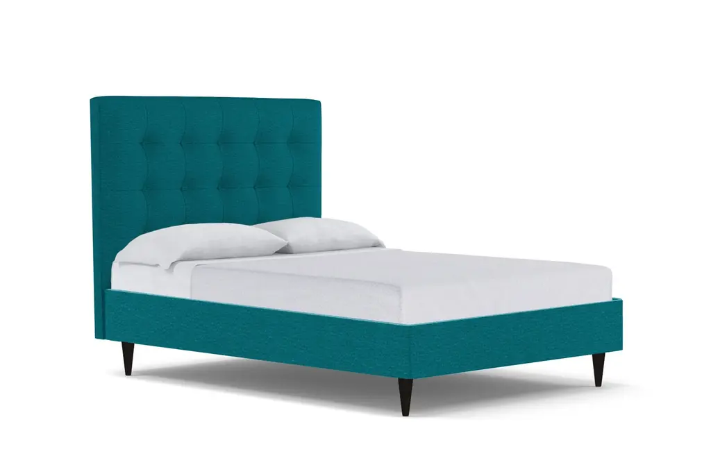 The Palmer Drive Upholstered Platform Bed is an utterly contemporary bed with a nod to the timeless stylings of Mid Century Modern design. This eye-catching, fully-upholstered platform bed features a button-tufted headboard and elegant conical legs. These details provide the sharp, clean, contemporary look that define the Palmer. Your pets will also appreciate the 7"h legs, which provide plenty of room for exploration and afternoon naps. The Palmer, designed by Apt2B resident designer Kyle Schuneman, is fully-upholstered, which means it can be admired from every angle. No detail of the Palmer Upholstered Bed has been overlooked - this upholstered bed is all buttoned-up and ready to ship out to your home! The Palmer Drive Upholstered Platform Bed is one of Apt2B's fantastic beds that we actually build to order in our downtown Los Angeles factory (made in the USA!). The Palmer Drive is available as a Queen size, King size, California King size, and a Full size by request! Although the Palmer is a true platform bed with wooden slats, it does require a bunkie board or box spring for added support. The Palmer Drive is also available in your choice of fabrics. You can choose from any Apt2B's vast selection of kid friendly and pet friendly fabric offerings! Whether you're looking for a grey upholstered bed or a pink upholstered bed the Palmer Drive has got you covered.
