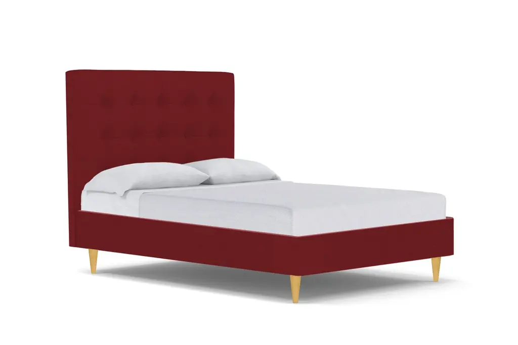 The Palmer Drive Upholstered Platform Bed is an utterly contemporary bed with a nod to the timeless stylings of Mid Century Modern design. This eye-catching, fully-upholstered platform bed features a button-tufted headboard and elegant conical legs. These details provide the sharp, clean, contemporary look that define the Palmer. Your pets will also appreciate the 7"h legs, which provide plenty of room for exploration and afternoon naps. The Palmer, designed by Apt2B resident designer Kyle Schuneman, is fully-upholstered, which means it can be admired from every angle. No detail of the Palmer Upholstered Bed has been overlooked - this upholstered bed is all buttoned-up and ready to ship out to your home! The Palmer Drive Upholstered Platform Bed is one of Apt2B's fantastic beds that we actually build to order in our downtown Los Angeles factory (made in the USA!). The Palmer Drive is available as a Queen size, King size, California King size, and a Full size by request! Although the Palmer is a true platform bed with wooden slats, it does require a bunkie board or box spring for added support. The Palmer Drive is also available in your choice of fabrics. You can choose from any Apt2B's vast selection of kid friendly and pet friendly fabric offerings! Whether you're looking for a grey upholstered bed or a pink upholstered bed the Palmer Drive has got you covered.