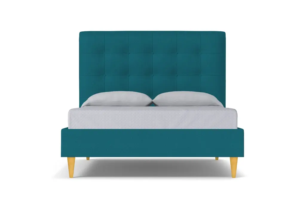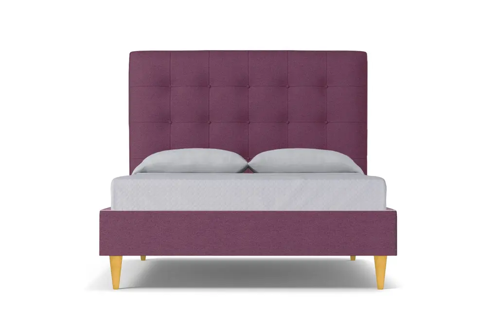 The Palmer Drive Upholstered Platform Bed is an utterly contemporary bed with a nod to the timeless stylings of Mid Century Modern design. This eye-catching, fully-upholstered platform bed features a button-tufted headboard and elegant conical legs. These details provide the sharp, clean, contemporary look that define the Palmer. Your pets will also appreciate the 7"h legs, which provide plenty of room for exploration and afternoon naps. The Palmer, designed by Apt2B resident designer Kyle Schuneman, is fully-upholstered, which means it can be admired from every angle. No detail of the Palmer Upholstered Bed has been overlooked - this upholstered bed is all buttoned-up and ready to ship out to your home! The Palmer Drive Upholstered Platform Bed is one of Apt2B's fantastic beds that we actually build to order in our downtown Los Angeles factory (made in the USA!). The Palmer Drive is available as a Queen size, King size, California King size, and a Full size by request! Although the Palmer is a true platform bed with wooden slats, it does require a bunkie board or box spring for added support. The Palmer Drive is also available in your choice of fabrics. You can choose from any Apt2B's vast selection of kid friendly and pet friendly fabric offerings! Whether you're looking for a grey upholstered bed or a pink upholstered bed the Palmer Drive has got you covered.