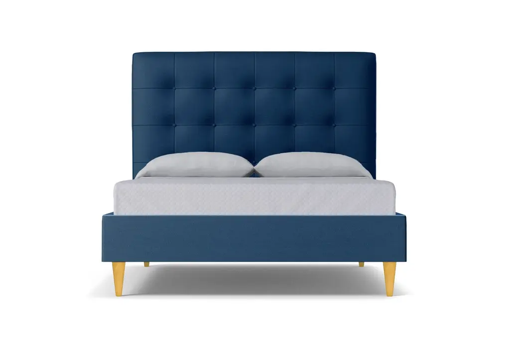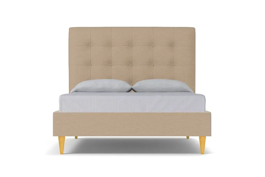The Palmer Drive Upholstered Platform Bed is an utterly contemporary bed with a nod to the timeless stylings of Mid Century Modern design. This eye-catching, fully-upholstered platform bed features a button-tufted headboard and elegant conical legs. These details provide the sharp, clean, contemporary look that define the Palmer. Your pets will also appreciate the 7"h legs, which provide plenty of room for exploration and afternoon naps. The Palmer, designed by Apt2B resident designer Kyle Schuneman, is fully-upholstered, which means it can be admired from every angle. No detail of the Palmer Upholstered Bed has been overlooked - this upholstered bed is all buttoned-up and ready to ship out to your home! The Palmer Drive Upholstered Platform Bed is one of Apt2B's fantastic beds that we actually build to order in our downtown Los Angeles factory (made in the USA!). The Palmer Drive is available as a Queen size, King size, California King size, and a Full size by request! Although the Palmer is a true platform bed with wooden slats, it does require a bunkie board or box spring for added support. The Palmer Drive is also available in your choice of fabrics. You can choose from any Apt2B's vast selection of kid friendly and pet friendly fabric offerings! Whether you're looking for a grey upholstered bed or a pink upholstered bed the Palmer Drive has got you covered.