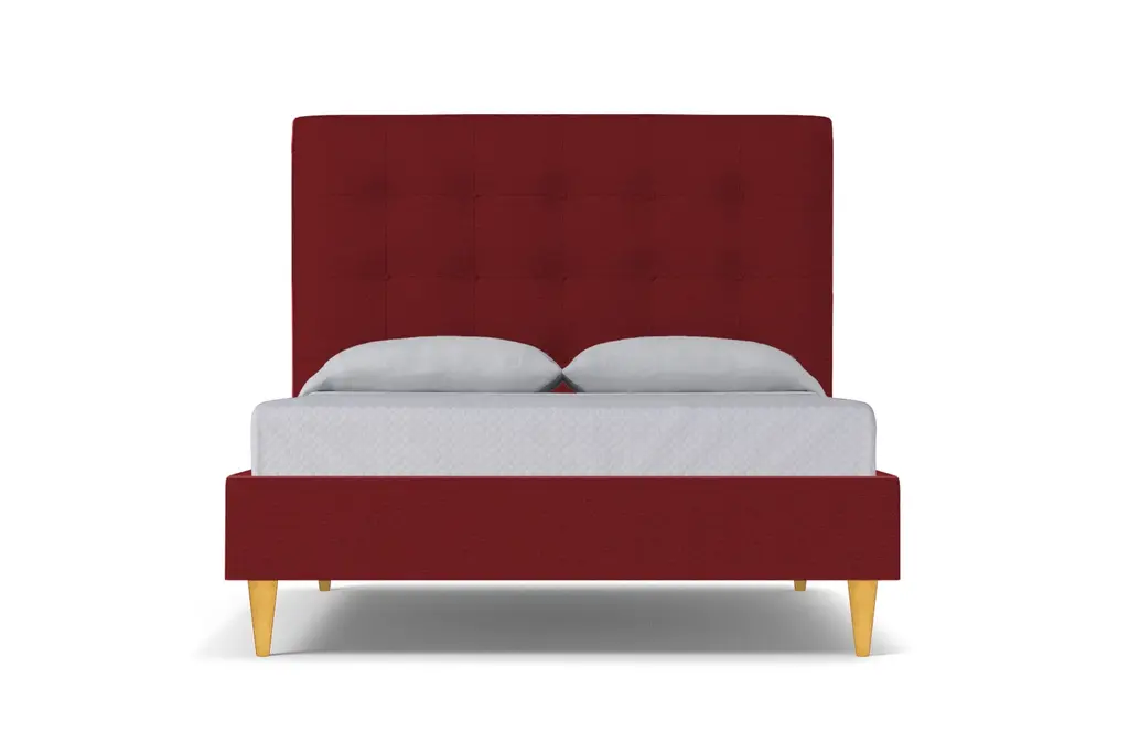 The Palmer Drive Upholstered Platform Bed is an utterly contemporary bed with a nod to the timeless stylings of Mid Century Modern design. This eye-catching, fully-upholstered platform bed features a button-tufted headboard and elegant conical legs. These details provide the sharp, clean, contemporary look that define the Palmer. Your pets will also appreciate the 7"h legs, which provide plenty of room for exploration and afternoon naps. The Palmer, designed by Apt2B resident designer Kyle Schuneman, is fully-upholstered, which means it can be admired from every angle. No detail of the Palmer Upholstered Bed has been overlooked - this upholstered bed is all buttoned-up and ready to ship out to your home! The Palmer Drive Upholstered Platform Bed is one of Apt2B's fantastic beds that we actually build to order in our downtown Los Angeles factory (made in the USA!). The Palmer Drive is available as a Queen size, King size, California King size, and a Full size by request! Although the Palmer is a true platform bed with wooden slats, it does require a bunkie board or box spring for added support. The Palmer Drive is also available in your choice of fabrics. You can choose from any Apt2B's vast selection of kid friendly and pet friendly fabric offerings! Whether you're looking for a grey upholstered bed or a pink upholstered bed the Palmer Drive has got you covered.