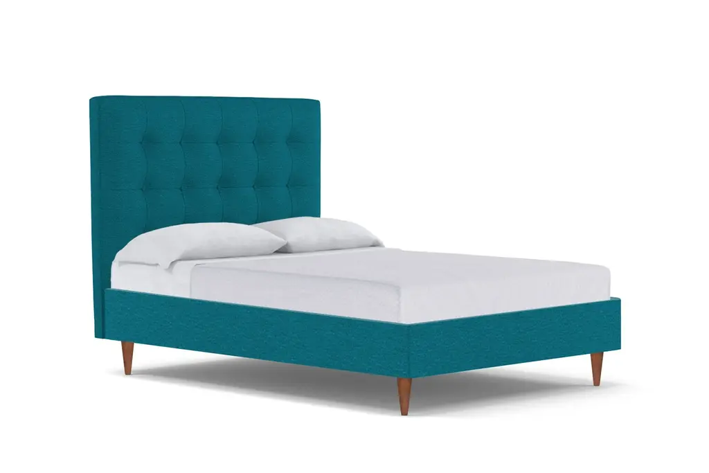 The Palmer Drive Upholstered Platform Bed is an utterly contemporary bed with a nod to the timeless stylings of Mid Century Modern design. This eye-catching, fully-upholstered platform bed features a button-tufted headboard and elegant conical legs. These details provide the sharp, clean, contemporary look that define the Palmer. Your pets will also appreciate the 7"h legs, which provide plenty of room for exploration and afternoon naps. The Palmer, designed by Apt2B resident designer Kyle Schuneman, is fully-upholstered, which means it can be admired from every angle. No detail of the Palmer Upholstered Bed has been overlooked - this upholstered bed is all buttoned-up and ready to ship out to your home! The Palmer Drive Upholstered Platform Bed is one of Apt2B's fantastic beds that we actually build to order in our downtown Los Angeles factory (made in the USA!). The Palmer Drive is available as a Queen size, King size, California King size, and a Full size by request! Although the Palmer is a true platform bed with wooden slats, it does require a bunkie board or box spring for added support. The Palmer Drive is also available in your choice of fabrics. You can choose from any Apt2B's vast selection of kid friendly and pet friendly fabric offerings! Whether you're looking for a grey upholstered bed or a pink upholstered bed the Palmer Drive has got you covered.