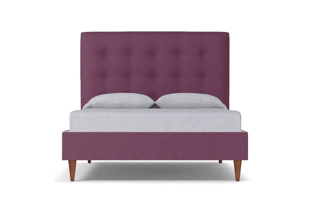 The Palmer Drive Upholstered Platform Bed is an utterly contemporary bed with a nod to the timeless stylings of Mid Century Modern design. This eye-catching, fully-upholstered platform bed features a button-tufted headboard and elegant conical legs. These details provide the sharp, clean, contemporary look that define the Palmer. Your pets will also appreciate the 7"h legs, which provide plenty of room for exploration and afternoon naps. The Palmer, designed by Apt2B resident designer Kyle Schuneman, is fully-upholstered, which means it can be admired from every angle. No detail of the Palmer Upholstered Bed has been overlooked - this upholstered bed is all buttoned-up and ready to ship out to your home! The Palmer Drive Upholstered Platform Bed is one of Apt2B's fantastic beds that we actually build to order in our downtown Los Angeles factory (made in the USA!). The Palmer Drive is available as a Queen size, King size, California King size, and a Full size by request! Although the Palmer is a true platform bed with wooden slats, it does require a bunkie board or box spring for added support. The Palmer Drive is also available in your choice of fabrics. You can choose from any Apt2B's vast selection of kid friendly and pet friendly fabric offerings! Whether you're looking for a grey upholstered bed or a pink upholstered bed the Palmer Drive has got you covered.
