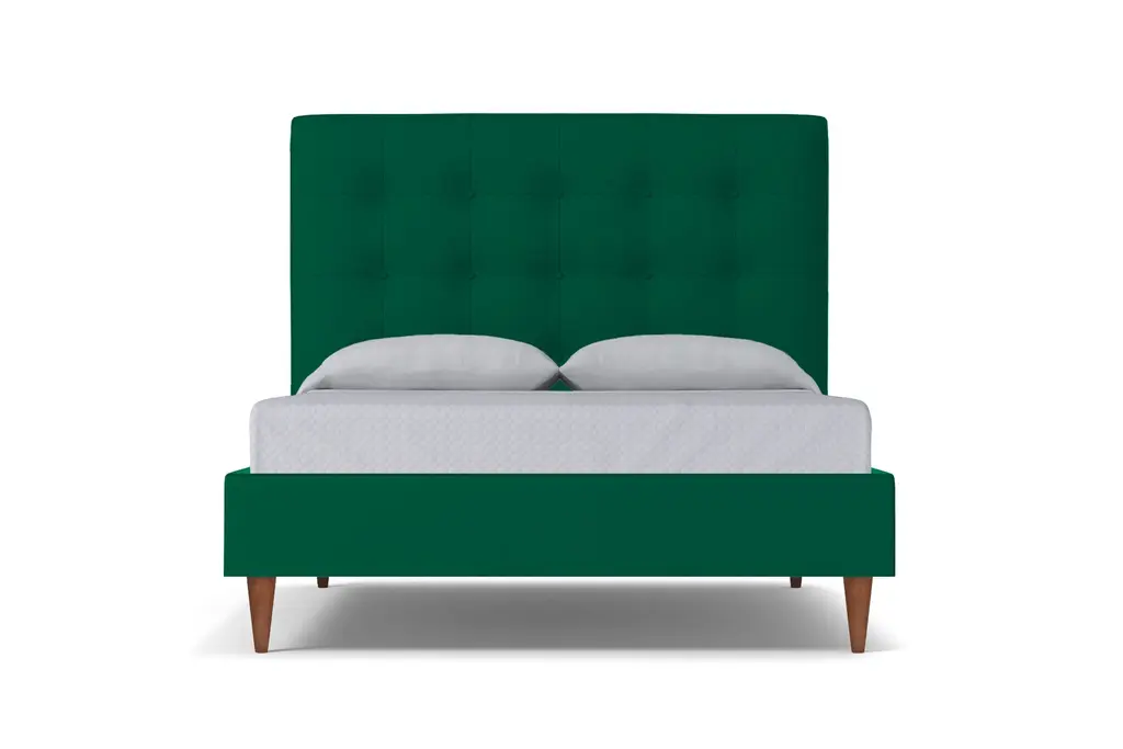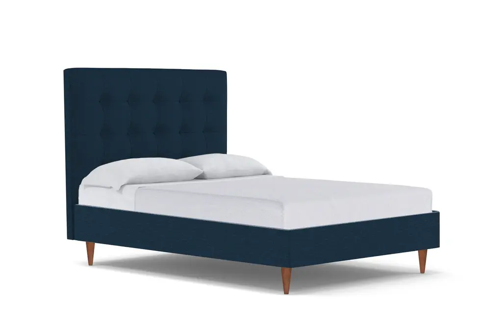 The Palmer Drive Upholstered Platform Bed, designed by Apt2B resident designer Kyle Schuneman, is an utterly contemporary bed with a nod to the timeless stylings of mid-century modern design. This eye-catching, fully upholstered platform bed makes any bedroom feel a bit more luxurious and elegant. In addition to having a timeless style that easily complements other decor, it also can be customized with the fabric color of your choice. It’s never been easier to get a bed frame suited specifically to your tastes. With its distinctive features, the Palmer Drive Upholstered Platform Bed adds an eye-catching accent to your space. Its tall, button-tufted headboard makes a grand statement, especially when upholstered in a bold and vibrant color. The elegant conical legs help to create the sharp, clean, contemporary look that defines the Palmer. The 7-inch leg height is also helpful for pets who like to use that space to explore and take afternoon naps or for handy under bed storage. The Palmer button-tufted bed frame is fully upholstered, which means it can be admired from every angle and doesn’t need to be placed against a wall. No detail of the Palmer Upholstered Bed has been overlooked. This upholstered bed is all buttoned-up and can be ready to ship out to your home in a matter of weeks! All you need to do is choose from over 30 colors to make it your own. You can choose from Apt2B's vast selection of kid-friendly and pet-friendly fabric offerings, and we’ll even send you up to 10 free fabric samples if you’re still trying to make your final decision. Whether you're looking for a grey upholstered bed or a pink upholstered bed, the Palmer Drive has got you covered. In addition, you can choose from three leg finishes to coordinate with other furniture in the room. The Palmer Drive Upholstered Platform Bed is one of Apt2B's fantastic beds that we actually build to order in our downtown Los Angeles factory. That’s right — this fantastically stylish bed is made in the USA! The Palmer Drive Upholstered Platform Bed available as a queen size, king size, California king size and full size by request! Please note that although the Palmer is a true platform bed with wooden slats, it does require a bunkie board or box spring for added support.