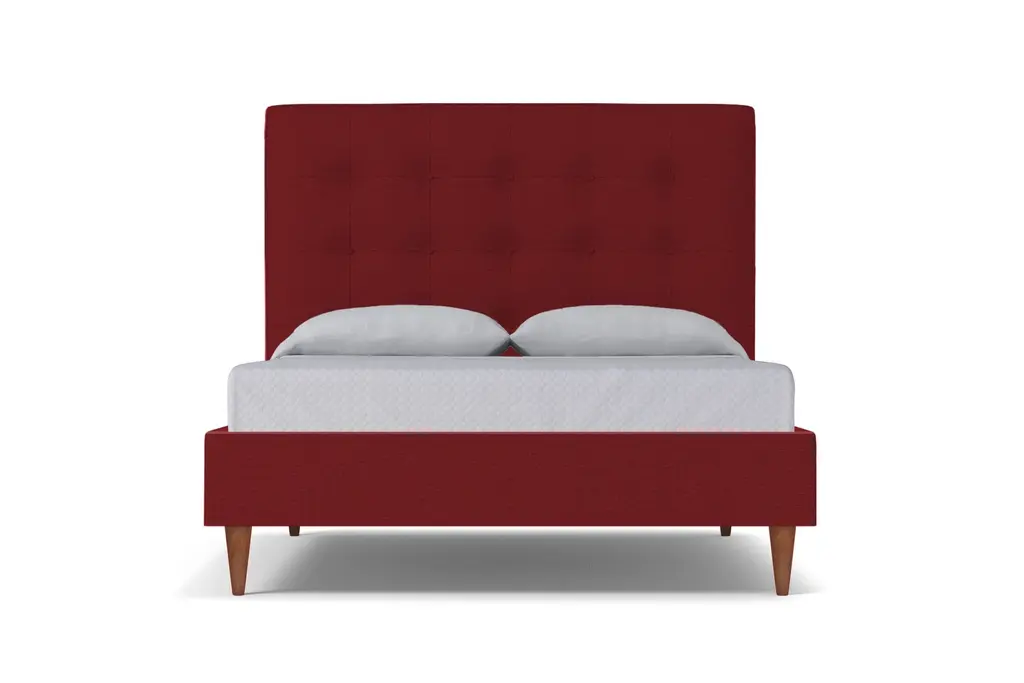 The Palmer Drive Upholstered Platform Bed, designed by Apt2B resident designer Kyle Schuneman, is an utterly contemporary bed with a nod to the timeless stylings of mid-century modern design. This eye-catching, fully upholstered platform bed makes any bedroom feel a bit more luxurious and elegant. In addition to having a timeless style that easily complements other decor, it also can be customized with the fabric color of your choice. It’s never been easier to get a bed frame suited specifically to your tastes. With its distinctive features, the Palmer Drive Upholstered Platform Bed adds an eye-catching accent to your space. Its tall, button-tufted headboard makes a grand statement, especially when upholstered in a bold and vibrant color. The elegant conical legs help to create the sharp, clean, contemporary look that defines the Palmer. The 7-inch leg height is also helpful for pets who like to use that space to explore and take afternoon naps or for handy under bed storage. The Palmer button-tufted bed frame is fully upholstered, which means it can be admired from every angle and doesn’t need to be placed against a wall. No detail of the Palmer Upholstered Bed has been overlooked. This upholstered bed is all buttoned-up and can be ready to ship out to your home in a matter of weeks! All you need to do is choose from over 30 colors to make it your own. You can choose from Apt2B's vast selection of kid-friendly and pet-friendly fabric offerings, and we’ll even send you up to 10 free fabric samples if you’re still trying to make your final decision. Whether you're looking for a grey upholstered bed or a pink upholstered bed, the Palmer Drive has got you covered. In addition, you can choose from three leg finishes to coordinate with other furniture in the room. The Palmer Drive Upholstered Platform Bed is one of Apt2B's fantastic beds that we actually build to order in our downtown Los Angeles factory. That’s right — this fantastically stylish bed is made in the USA! The Palmer Drive Upholstered Platform Bed available as a queen size, king size, California king size and full size by request! Please note that although the Palmer is a true platform bed with wooden slats, it does require a bunkie board or box spring for added support.