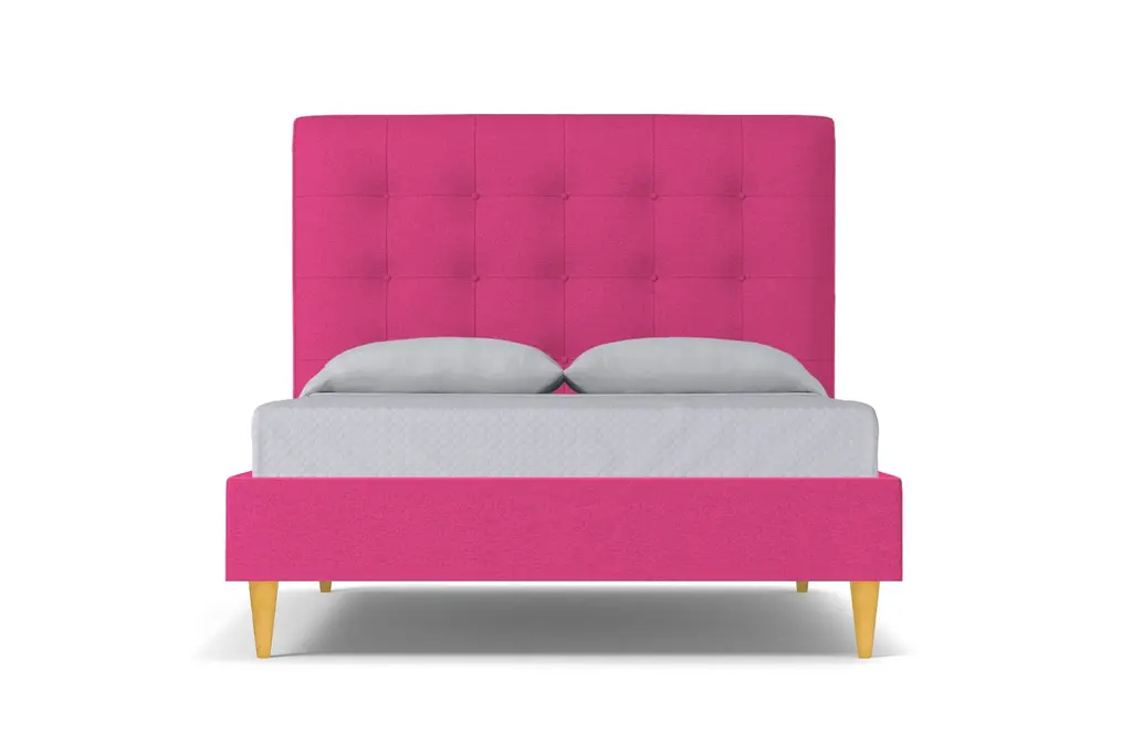 The Palmer Drive Upholstered Platform Bed, designed by Apt2B resident designer Kyle Schuneman, is an utterly contemporary bed with a nod to the timeless stylings of mid-century modern design. This eye-catching, fully upholstered platform bed makes any bedroom feel a bit more luxurious and elegant. In addition to having a timeless style that easily complements other decor, it also can be customized with the fabric color of your choice. It’s never been easier to get a bed frame suited specifically to your tastes. With its distinctive features, the Palmer Drive Upholstered Platform Bed adds an eye-catching accent to your space. Its tall, button-tufted headboard makes a grand statement, especially when upholstered in a bold and vibrant color. The elegant conical legs help to create the sharp, clean, contemporary look that defines the Palmer. The 7-inch leg height is also helpful for pets who like to use that space to explore and take afternoon naps or for handy under bed storage. The Palmer button-tufted bed frame is fully upholstered, which means it can be admired from every angle and doesn’t need to be placed against a wall. No detail of the Palmer Upholstered Bed has been overlooked. This upholstered bed is all buttoned-up and can be ready to ship out to your home in a matter of weeks! All you need to do is choose from over 30 colors to make it your own. You can choose from Apt2B's vast selection of kid-friendly and pet-friendly fabric offerings, and we’ll even send you up to 10 free fabric samples if you’re still trying to make your final decision. Whether you're looking for a grey upholstered bed or a pink upholstered bed, the Palmer Drive has got you covered. In addition, you can choose from three leg finishes to coordinate with other furniture in the room. The Palmer Drive Upholstered Platform Bed is one of Apt2B's fantastic beds that we actually build to order in our downtown Los Angeles factory. That’s right — this fantastically stylish bed is made in the USA! The Palmer Drive Upholstered Platform Bed available as a queen size, king size, California king size and full size by request! Please note that although the Palmer is a true platform bed with wooden slats, it does require a bunkie board or box spring for added support.