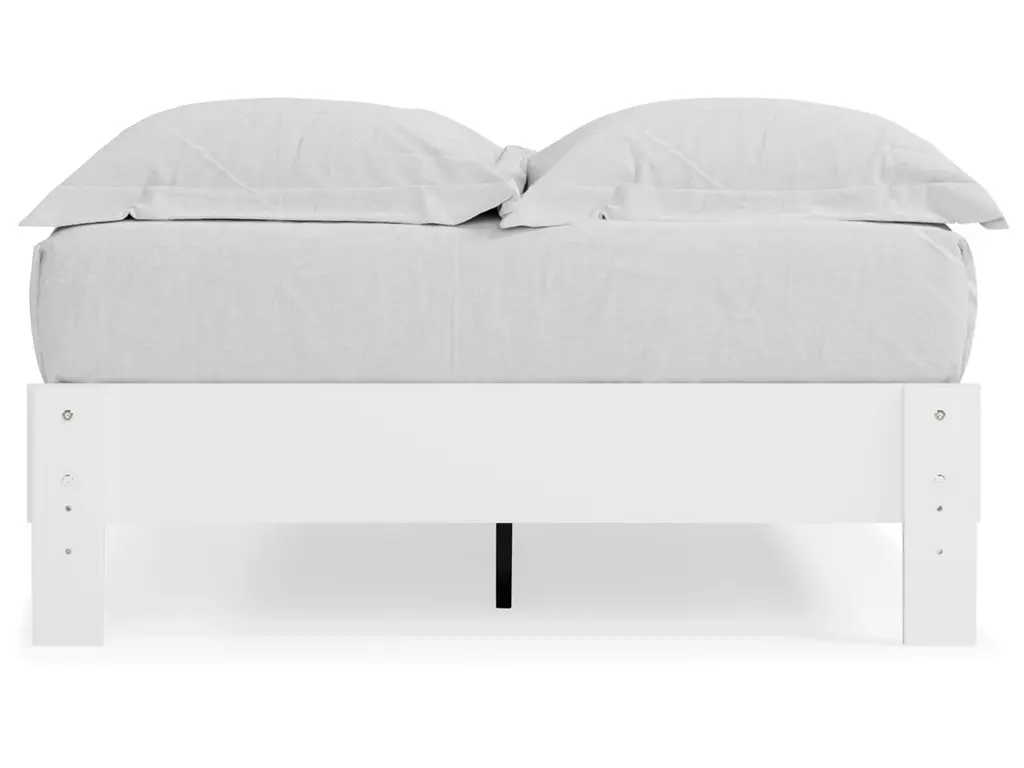 The perfect marriage of contemporary and casual style, the Piperton full platform bed is a charming addition to your home. This bed keeps things simple with a crisp matte white finish. Best of all, it includes a footboard, rails and platform–no additional foundation or box spring needed.